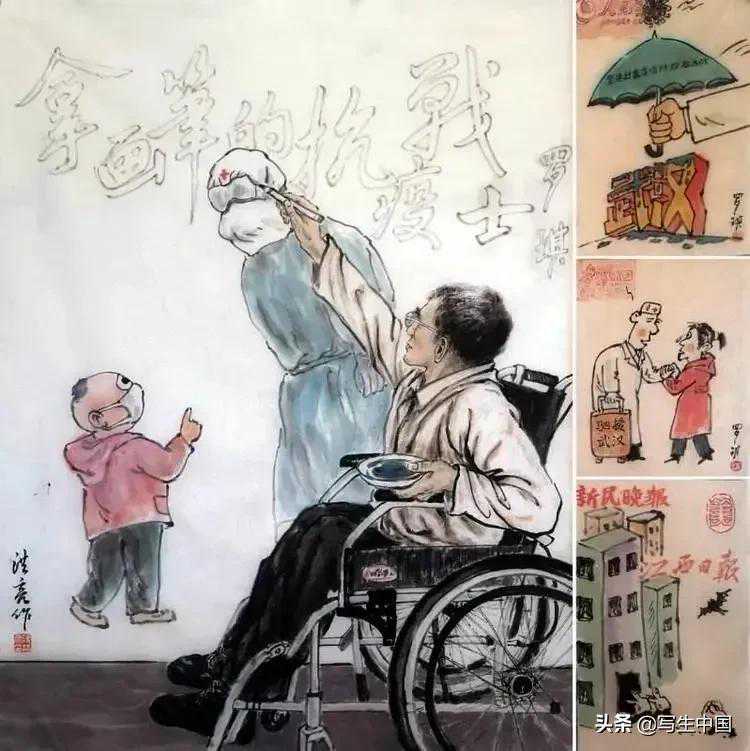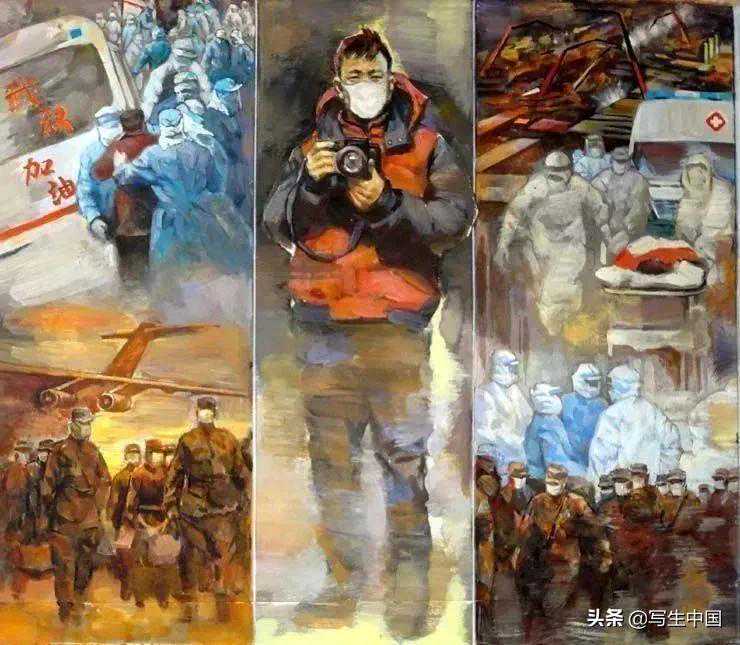 《拿画笔的抗疫战士》中国画蒋洪亮