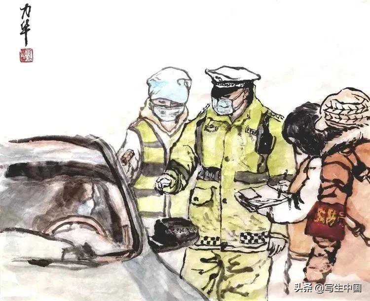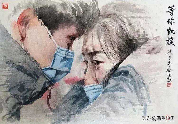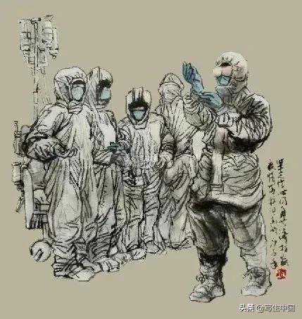 《抗疫逆行者》中国画文麒