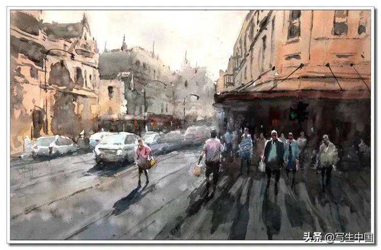 《路口》中国画36x49cm冯英杰