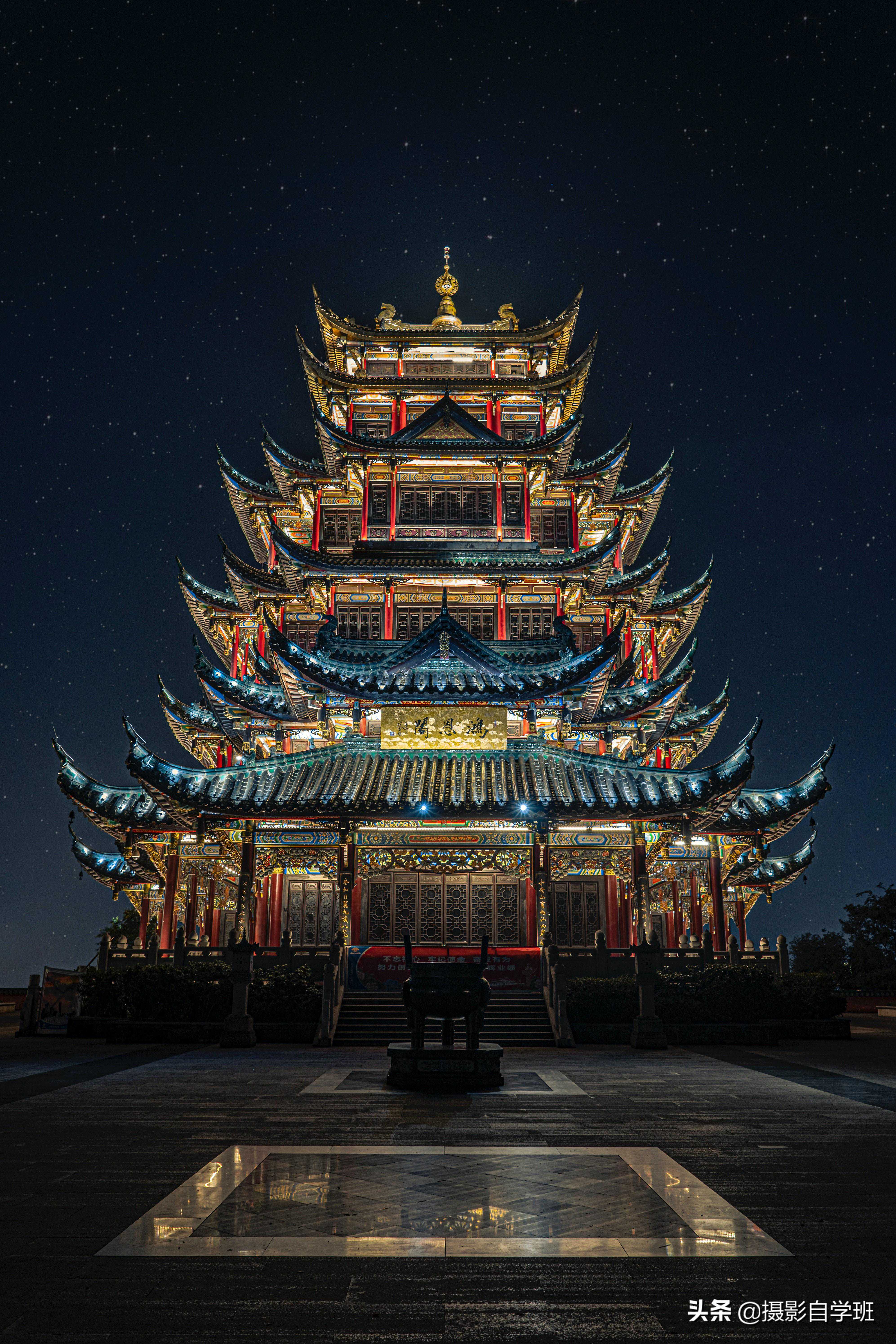 (1)当建筑暗时,我们要等待古建筑上的灯亮起来,有了光,古建筑才会有亮,剩下就是怎么拍的问题了。