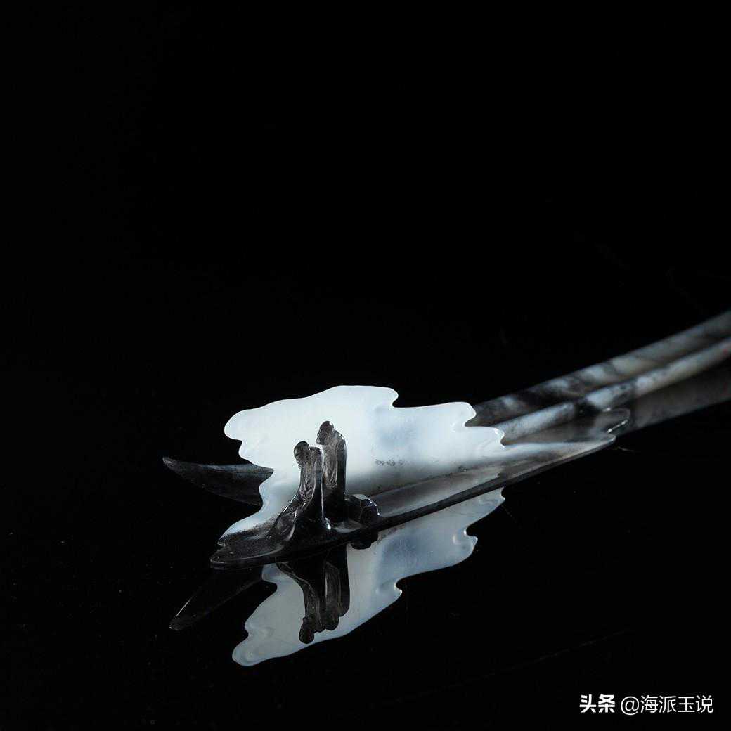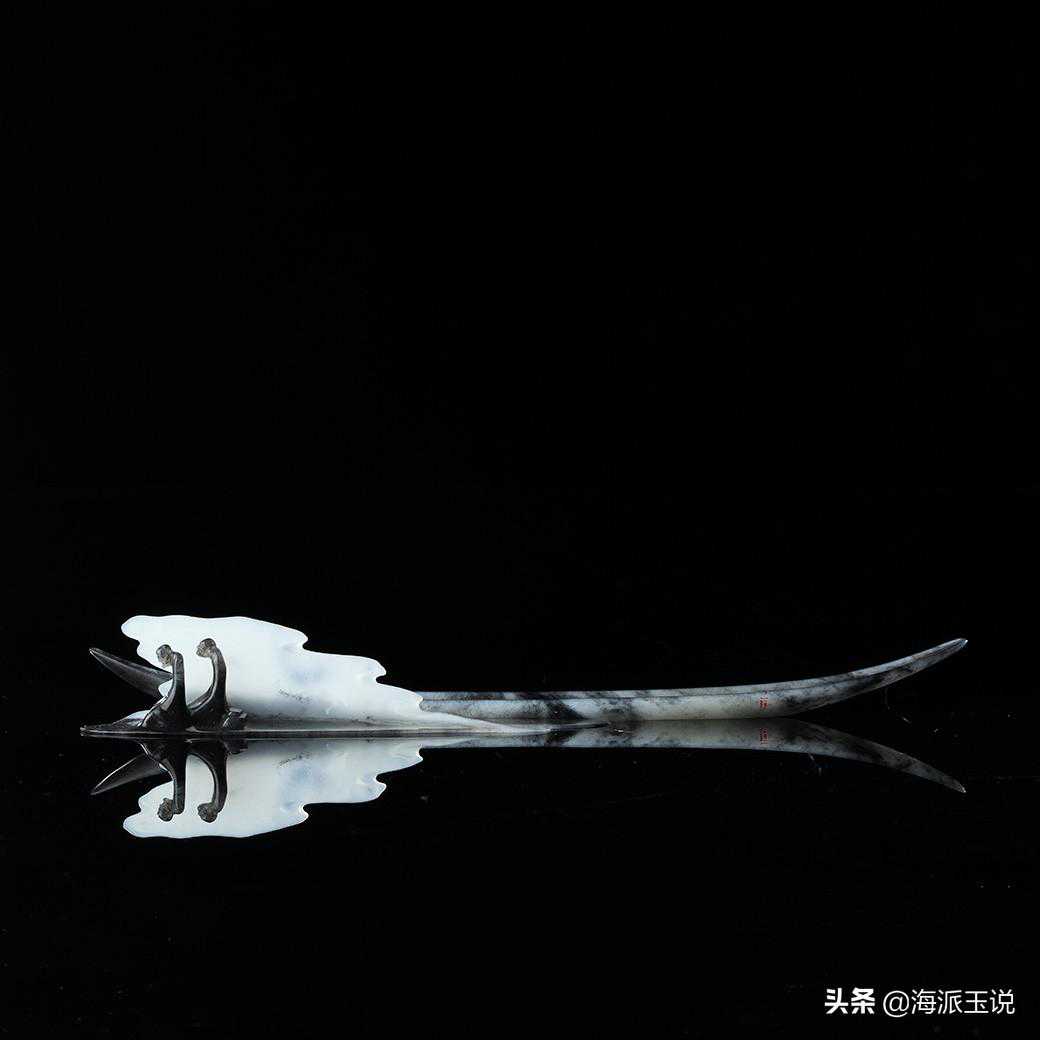 在自己的雕刻作品中,邱启敬倾注着对古典美学的景仰与重构,传统山水、花鸟、人物,尽数被他分解成为自我的创作元素,这件《一苇渡江》,邱启敬充分利用了和田玉青花籽料中黑与白的原料特征,依材就势,巧妙构思,将白润的玉质部分雕琢为一叶扁舟,两个双手合十的罗汉,似乎在参悟什么。