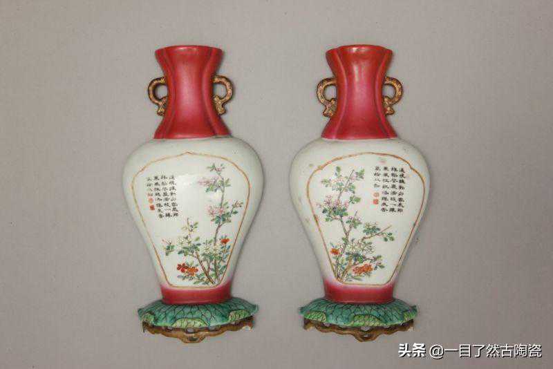 壁瓶又称轿瓶,是正常圆形或方形瓷器“半份”的造型,陈设的时候一般是挂着的,所以后壁为平板形,没有施釉等装饰,烧制时后背一般还预留有挂孔,以便将其固定在墙壁或床榻、轿子的内柱上。台北故宫的统称为“轿瓶”,但根据壁瓶的丰富用途,我还是觉得我们“壁瓶”的说法比较贴切。