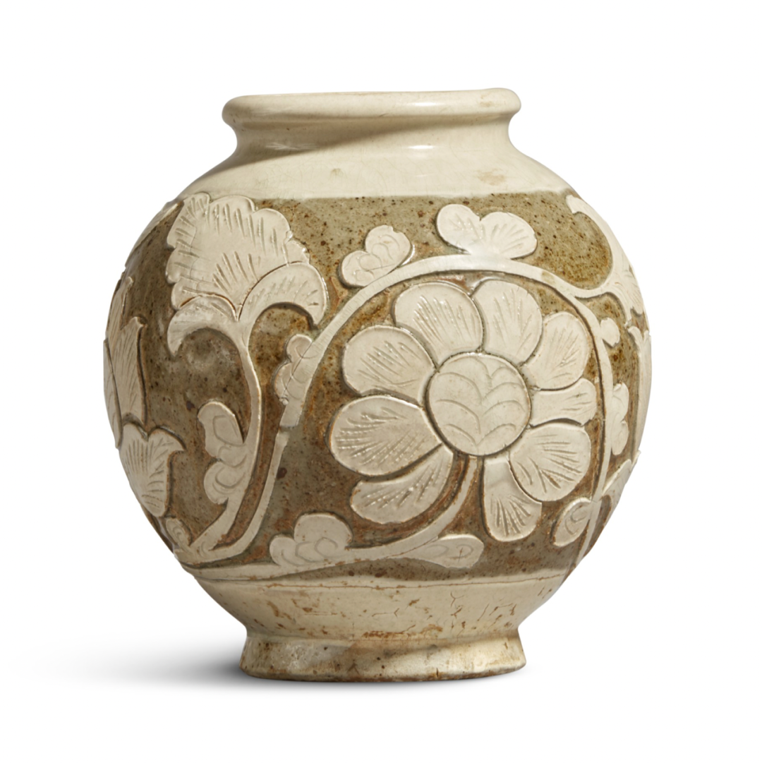 金磁州窑白釉剔花罐