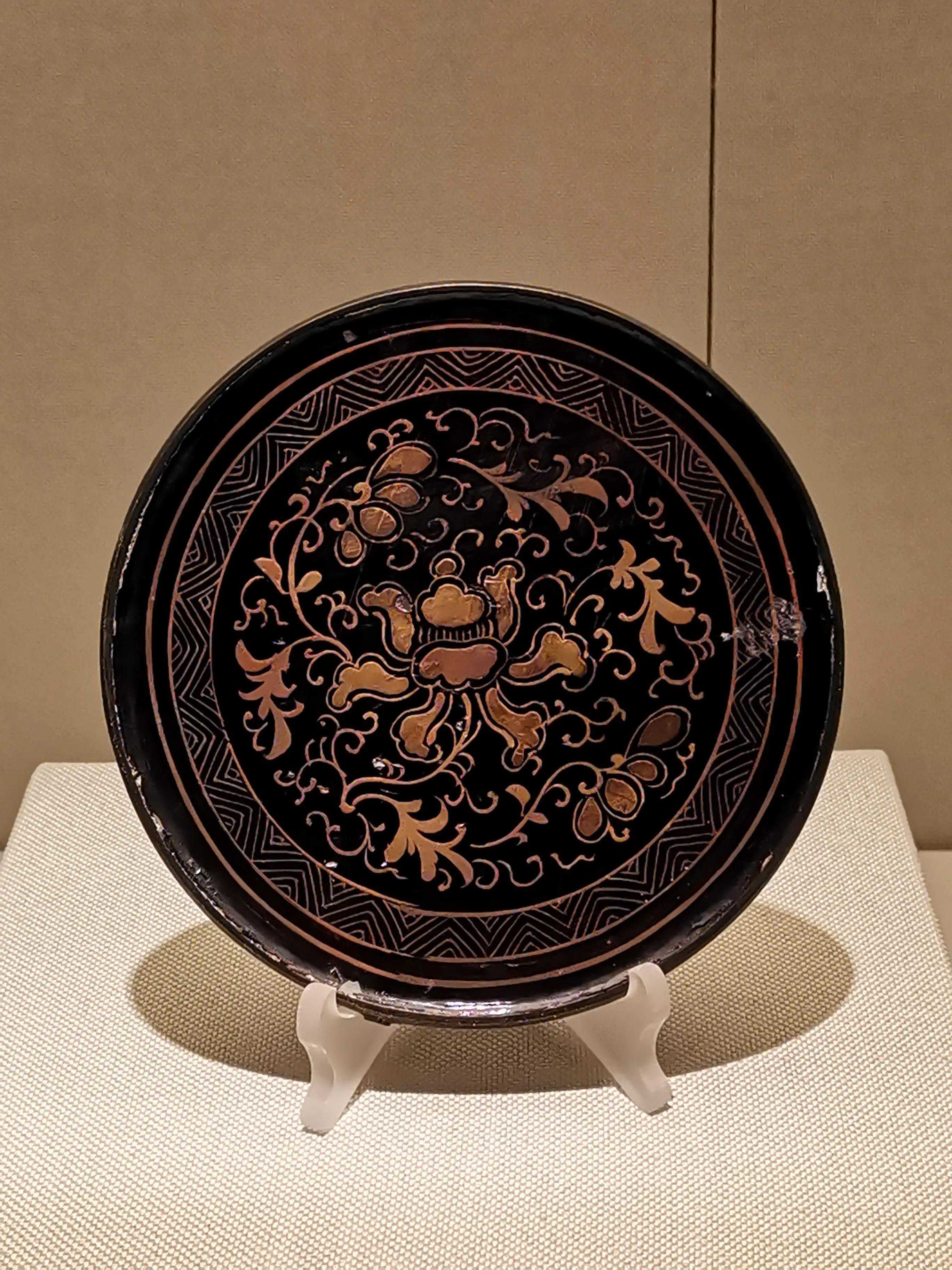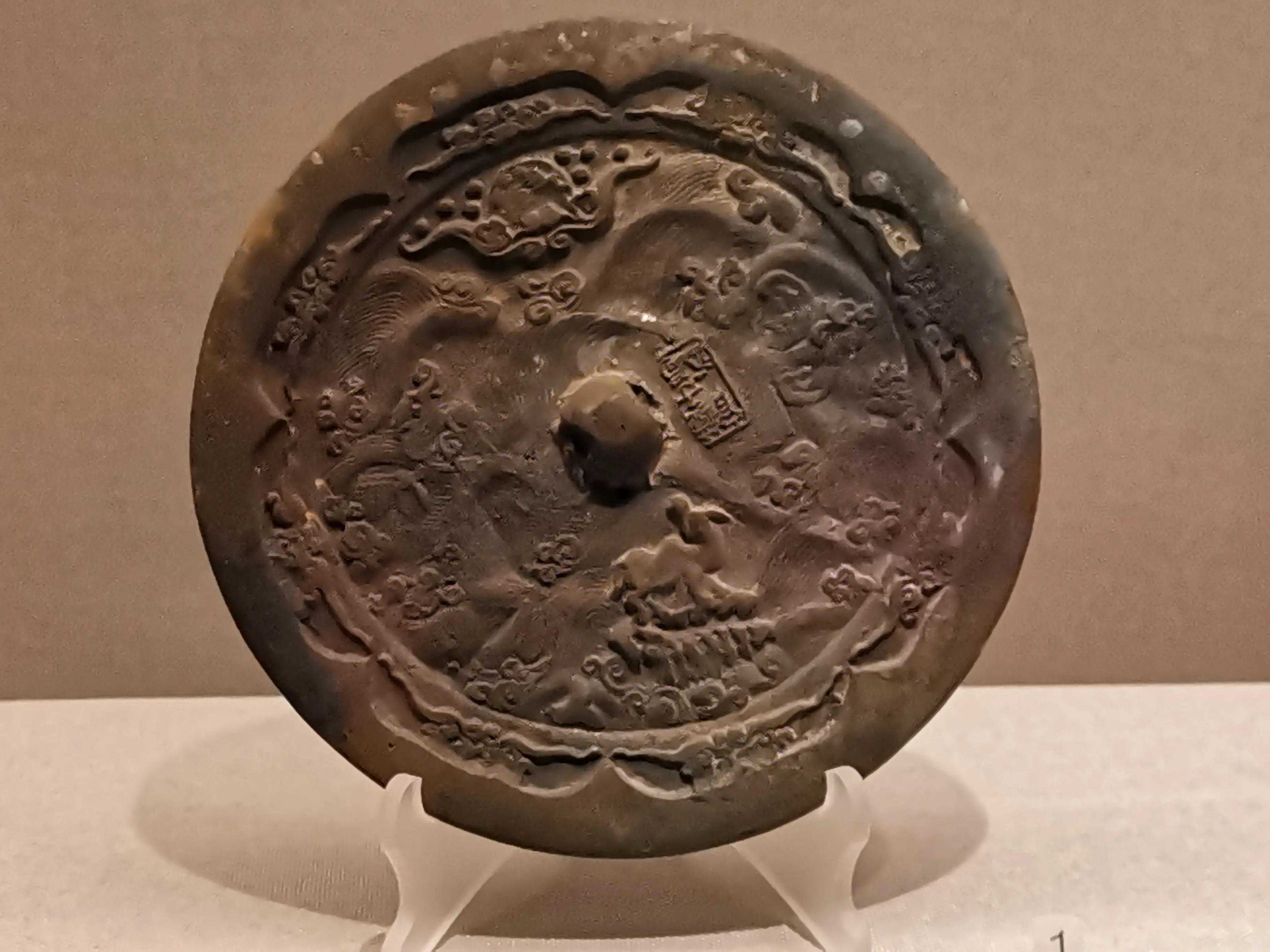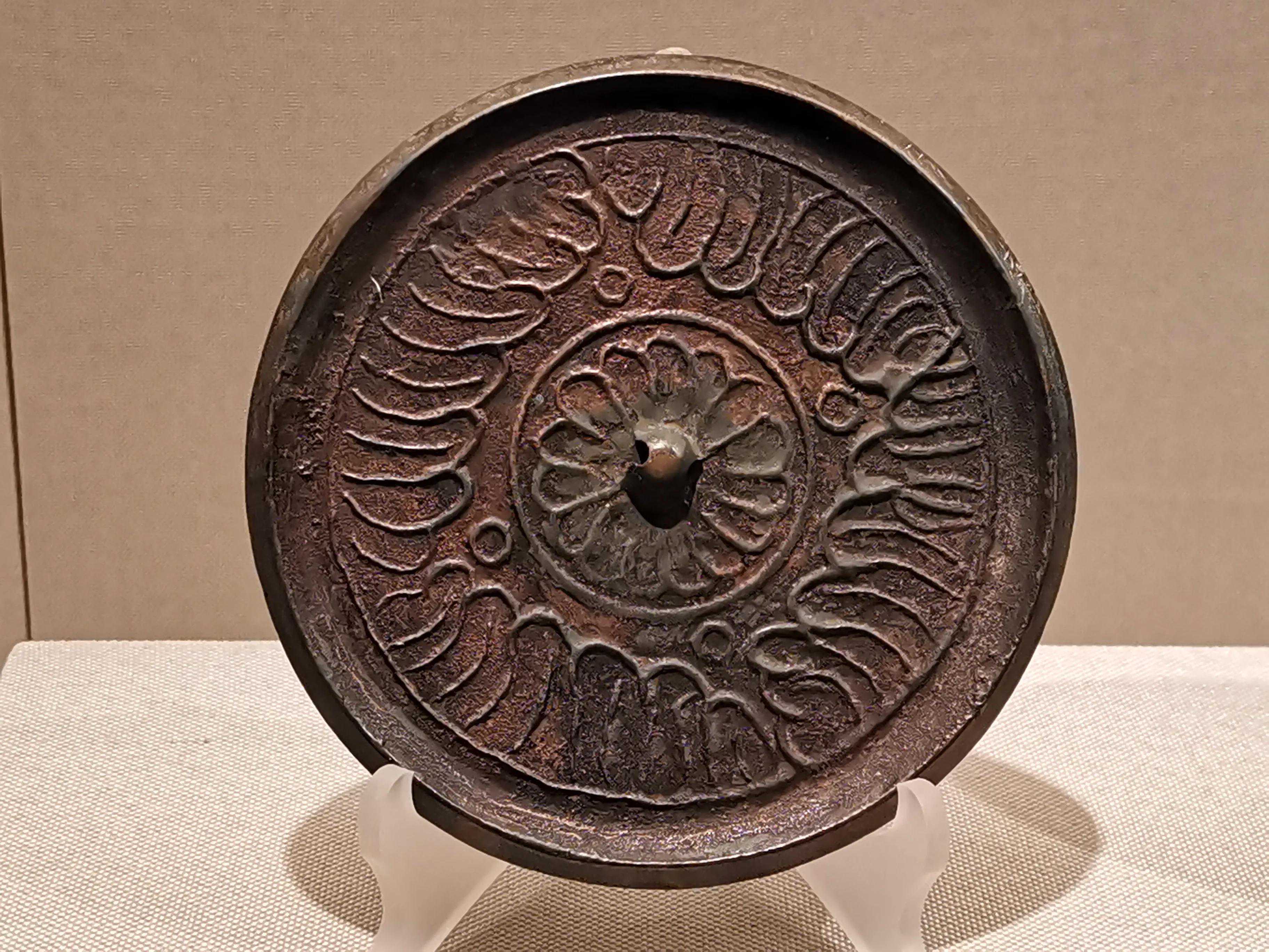 辽镜承继汉、唐镜遗风,又吸收宋镜风格,有其独到之处。如典型的龟背纹镜,采用方圆结合、层层分割、曲直相形的图案,形成独特的四合纹样。龙纹镜以其刚健犀利的细线刻技法,带来高超的艺术表现能力。菊花纹镜,更多地吸收了宋镜缠枝花草的韵味,细腻、柔美而雅致,更以其花形的镜形,达到镜、花合一的艺术效果。辽代铜镜中的迦陵频伽纹镜独具特色,迦陵频伽是佛教故事中的神鸟,人头鸟身,译名美音鸟或妙声鸟。铜镜出土于辽宁省建平县张家营子乡勿沁吐鲁村辽墓,以圆润柔和的凸线勾画迦陵频伽,空白处以花叶补满。以佛教故事作为纹饰题材,反映了佛教在辽代的深远影响。