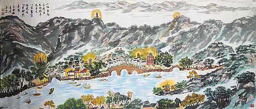 我们山东自古就有”齐鲁之帮礼仪之乡”之美誉,春秋时就已成为中国文化的中心,成为中国文化的主题。江先春教授就是山东威海,他先后就读于中央美术学院、中国书画函授大学、中国书协培训中心研究生班。受李可染、姚治华、欧阳中石等众多名师教诲。现为中国工艺美术家协会理事,中国美术学会常务委员会常务委员,中国国家书画院副院长,台北故宫画院名誉院长及客座教授,中国国画家协会常务理事,中国美术研究会研究员,胶东画院院长,一级美术师。江先春先生的画从传统中来,又学过风水,写出人们向往的那种风水山水画来。“山为骨架,水为血脉“与自然山水景物有机的结合在一起,符合依山傍水、负阴抱阳、藏风聚气、融入自然、充满生机与活力的聚落空间体系。江先春的风水山水画获中华人民共和国版权局著作权,江先春的画新奇、有自然感又有超越自然的非凡活力。
