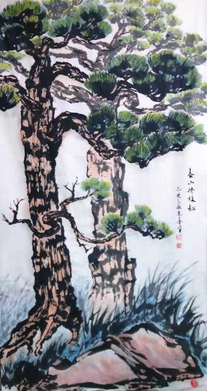 江先春先生先后到过三山五岳,并画了有三山五岳八条屏,近处泰山、昆嵛山、正棋山、铁槎山等大山采风写生,创作了几百幅山水画,他的”观观“一画看几秒钟画中的女人转来转去有明显的动的感觉,被世人称作画画活了。