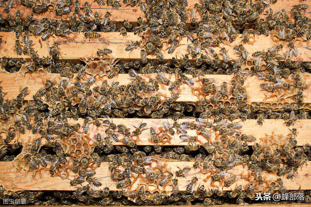 混合分蜂这种分蜂方式与上面两种不同,这种方式主要在大流蜜期来临的前进行,一般是从闹分蜂热的蜂群中分出一批幼蜂和封盖子,在采集蜂大量外出的时候进行比较好,抽脾的时候可以用清水喷洒蜂脾上的幼蜂,这样就算不同等群的蜂脾混合在一起也没有什么关系,幼蜂的识别能力没有成年工蜂那么强,很好合群。方法还是在组建好新群以后一到二天介入王台,由于这种情况我们从其它蜂群抽掉了大量的封盖子脾和幼蜂,要注意再次产生分蜂热,同时还应该注意蜂群中大幼虫的哺育问题,因为老蜂会回巢,蜂群中往往剩余的是幼蜂,所以如果外界气候条件差,一定要记得喂养。