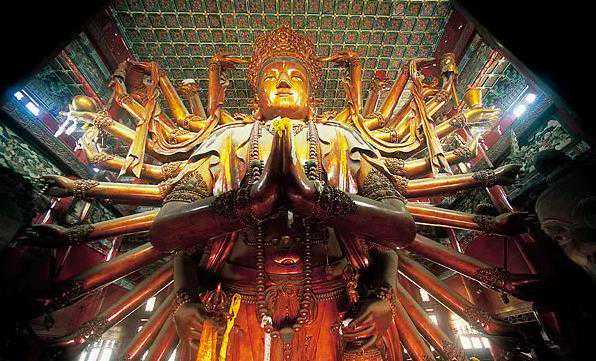 佛像通高48米,为阿弥陀佛造像,集众多佛像造型优点于一身,实乃当代艺术精品。