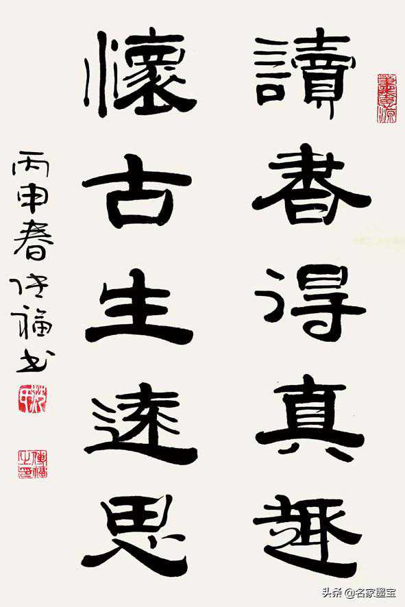范传福的百家姓中堂楹联之作,通常以隶书和小楷结合的形式写就,古朴而内敛,散发出一种长久的宁静、淡然的气质,展现了传统书画的庄重典雅之姿,是以书法形式彰显家风的典范之作。