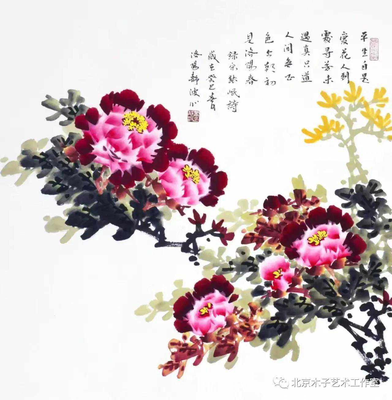乔静波自幼受舅公“牡丹王”屈柳庵、屈吟庵先生的启蒙,可谓尽得天时、地利、人和。他浓厚的兴趣、过人的天赋,加上前辈的悉心教导,使其醉心墨海,数十载笔耕不辍,不仅尽得“牡丹王”画风真传,他笔下的牡丹还能够独具一格,凭借高超的技艺和隽逸别致的画风多次入选《中国当代画家精品集》《中国书画家名录》等典籍。