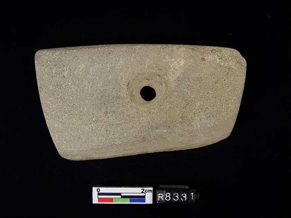 为蟠龙之侧面,口为一长槽,中为一穿,两者相连而实不连,色淡白。