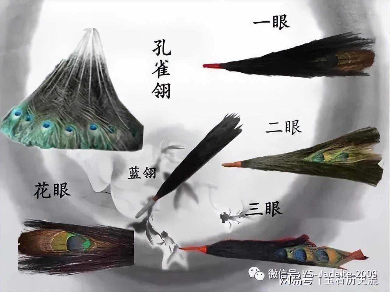 清朝的官帽,在顶珠下有翎管,用以安插翎枝。清翎枝分蓝翎和花翎两种,蓝翎为鹖羽所做,花翎为孔雀羽所做。花翎在清朝是一种辨等威、昭品秩的标志,非一般官员所能戴用;其作用是昭明等级、赏赐军功,清代各帝都三令五申,既不能僭越本分妄戴,又不能随意不戴,如有违反则严行参处;一般降职或革职留任的官员,仍可按其本任品级穿朝服,而被罚拔去花翎则是非同一般的严重处罚。花翎又分一眼、二眼、三眼,三眼最尊贵;所谓“眼”指的是孔雀翎上眼状的圆,一个圆圈就算做一眼。