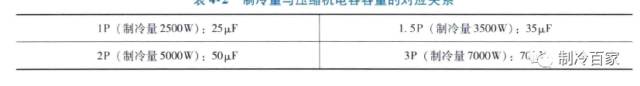 4)、空调器制冷量与压缩机电容容量的大致对应关系。