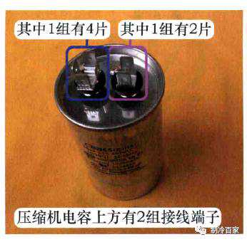 3压缩机电容接线知识压缩机电容也设有2组接线端子,见下图,: