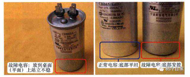 1、根据外观判断压缩机电容好坏