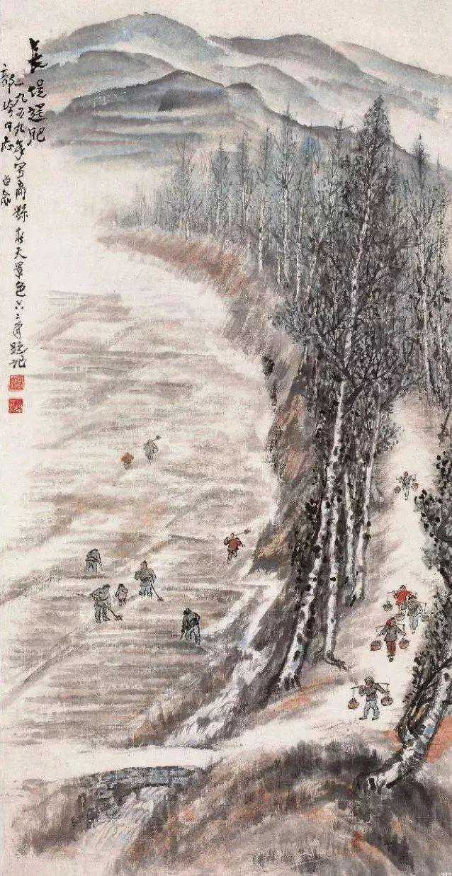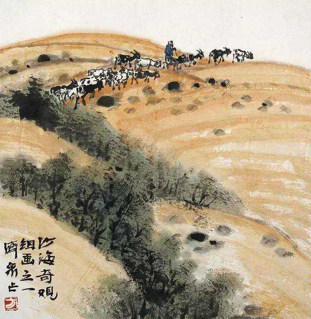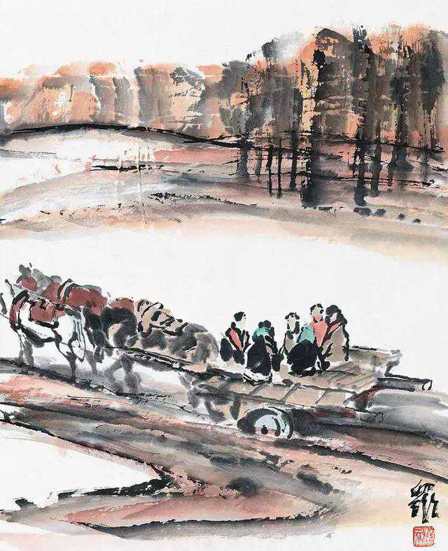 2、赵望云(1906-1977),长安画派奠基人,现代著名国画家。河北束鹿人。早年与王森然、李苦禅等组织吼虹艺术社,1937年创办《抗战画刊》。擅长山水、人物,创作面向生活,画风于质朴厚重中蕴含秀雅,尤长于表现陕北山水和各族人民的劳动生活,为长安画派的开创画家之一。