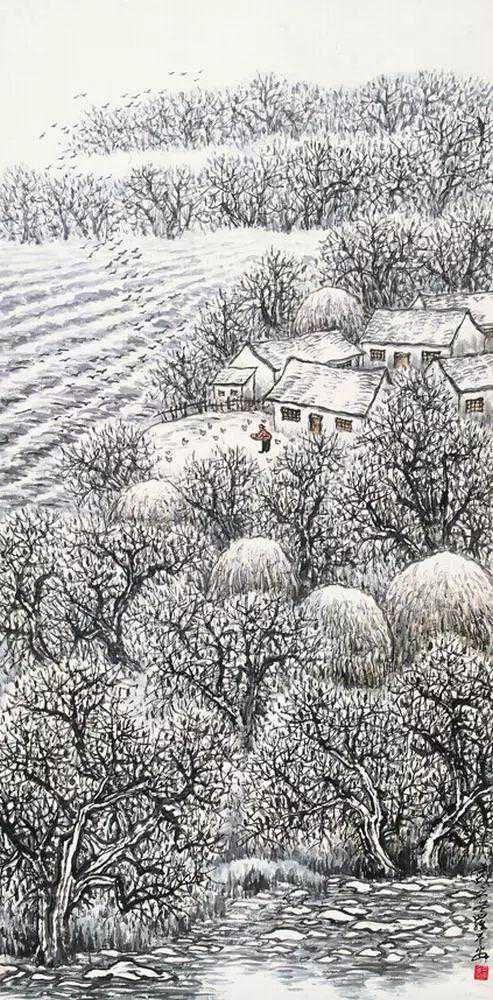 6、赵振川,1944年生于西安。国家一级美术师,中国美协理事,中国美协国画艺委会委员。自幼随父赵望云先生学习中国画,并受教于石鲁先生。画风于厚重深沉中不失灵动,宏阔幽远中更饶意趣。
