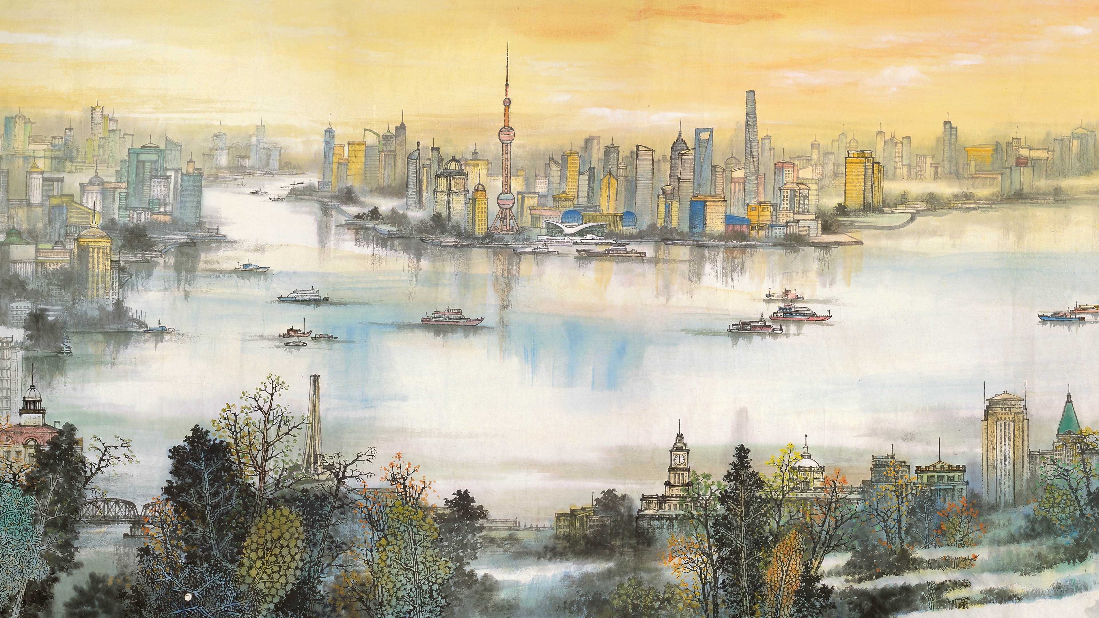 家乡的山水、路、乌篷船、房屋、雨雾是画家心中最美的记忆,也是最深刻最熟悉的印记,他以江南才子之细腻,将自然与情感糅合,苍茫中有灵秀,古雅而又有文人格调,清秦祖永《桐阴论画》曰:“山水既臻化境,即间写人物,亦恬静闲适,神韵悠然,无一毫妩媚习气。盖由其摆脱尘鞅,另开蹊径。”笔、墨、水都是适意的,温和又包容的。深深懂得,完全融入,得造化之天然,像一曲远离喧嚣的轻音乐,轻轻流淌,慢慢入心。