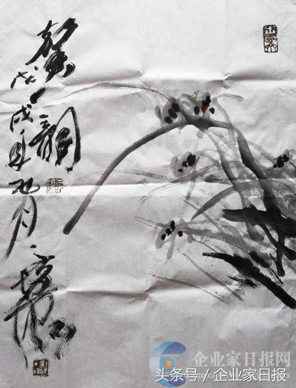 徐培晨是在书写几幅书法作品后又作了其经典之作猿猴之后,随手拈来一幅宣纸,在稍逊即逝中瞬间所作的兰花,他的兰花在笔墨技法上继承了传统的精华,并加以发展,以其热情奔放表现当代意识,抒发当代情怀的,从用笔的粗细、疾徐、顿挫、方圆以及墨的枯、湿、浓、淡中可以看出他用笔用墨的讲究,还可感受到他对美的事物的细微而敏锐的观察力和细腻、精巧的表现力,那简洁明快,雄健抑扬,顿挫多变的线条,那正侧、俯仰、聚散皆有,疏密变化,浓淡相宜,姿态优美,精神飞扬的兰草,不但让人享受到自然之美和艺术之美,还让人生发情思,与他的情感产生共鸣,与大自然的美丽共放异彩。