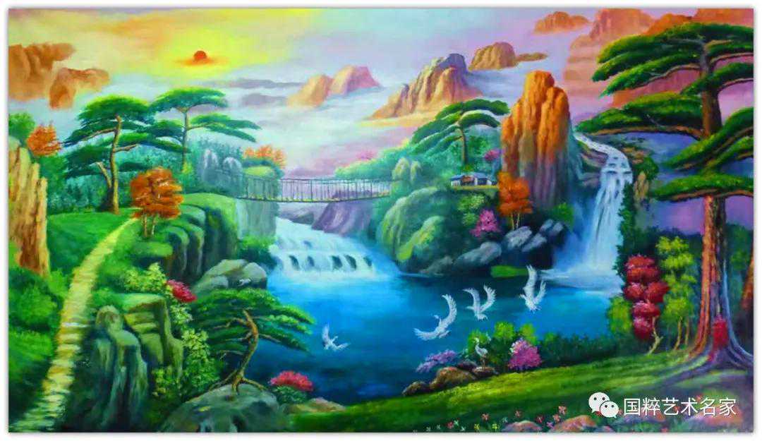 严敬坤的油画的表现形式上,可以看出他是努力的摆脱了传统绘画中对客观物象的光影依赖和形体束缚,从而使作品的视觉艺术,上升到了一种纯粹的绘画语言层面,画面的主观精神状态也得以升华,岩松以写意为创作支点,在画中绘就了丰富的色彩,同时自如的写意笔触也在画中得到了完美展现,通幅笔触,柔而不滑,刚而不僵,气韵生动,可以说它是与色彩一同构筑了一种和谐自然的写意艺术美。