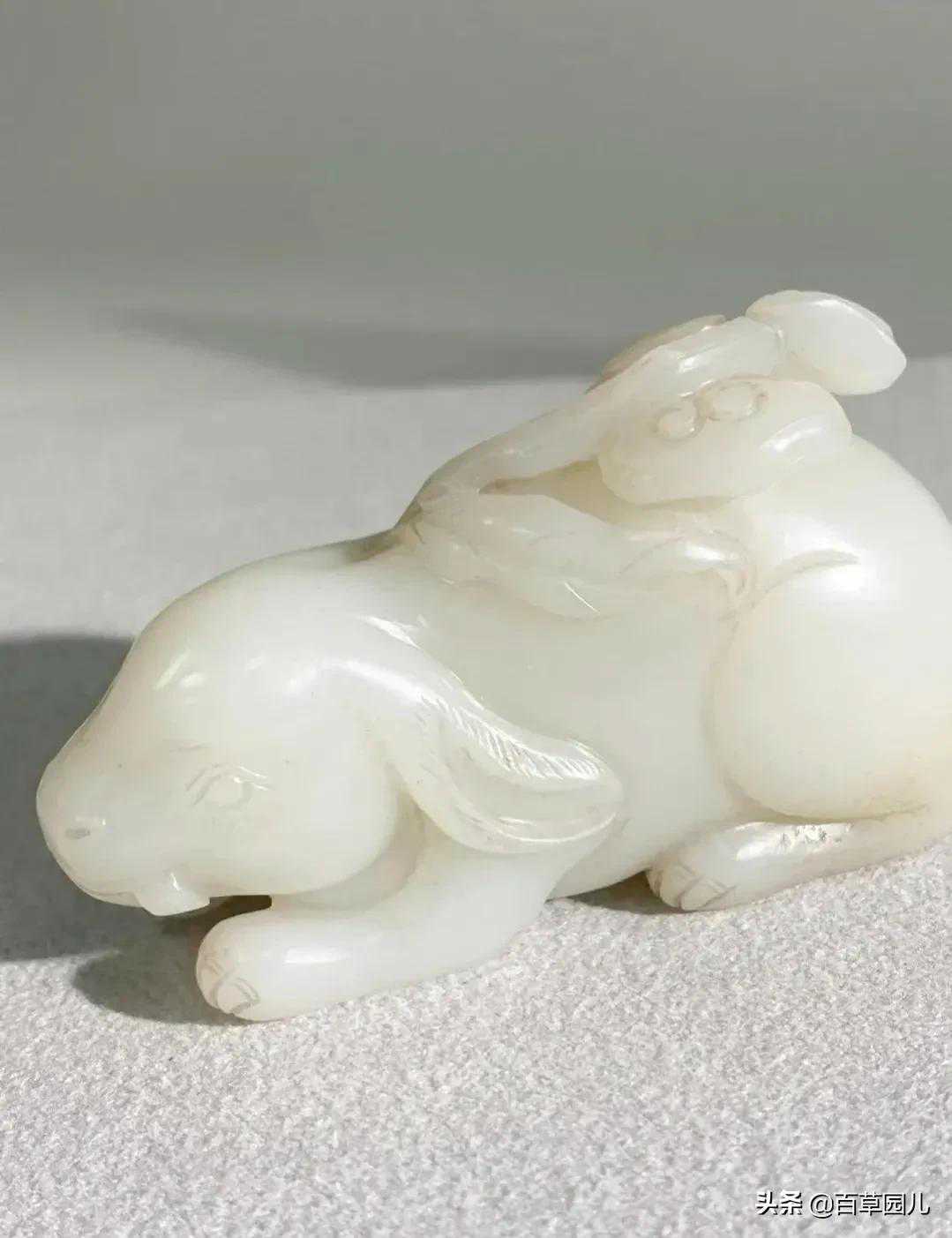 如果说这只玉兔突出的是其美好寓意,下面这只则着重描摹小兔子本身的萌态乖巧: