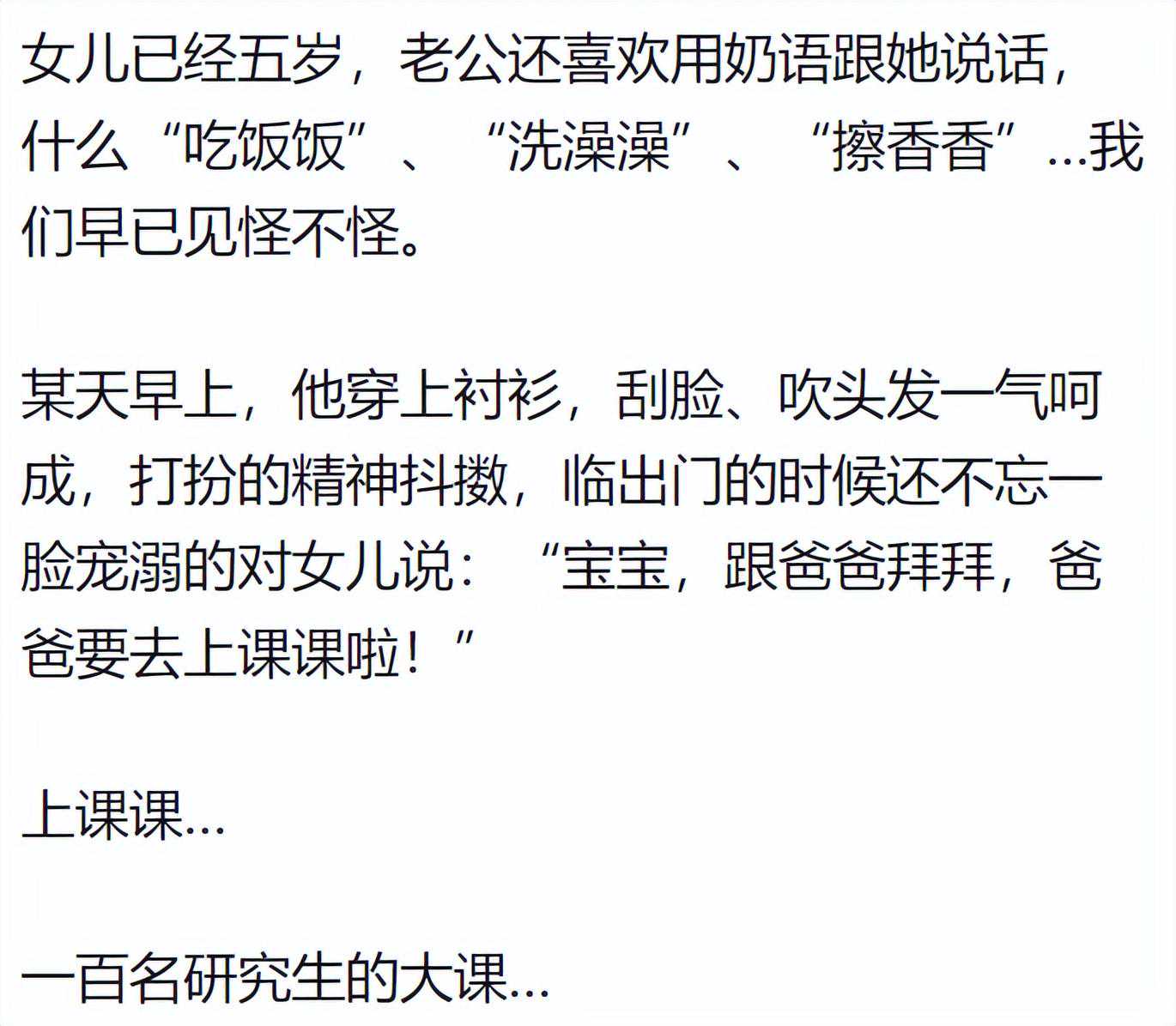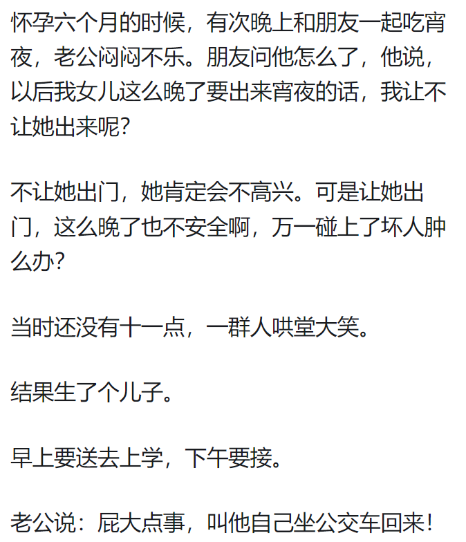 当我刚知道我媳妇怀的是姑娘的时候,一晚上没睡,又激动又难过。激动的是要有个小棉袄了。难过的是万一闺女以后找男朋友了,我把她男朋友打出去,她会不会生我的气!现在闺女快5岁了
