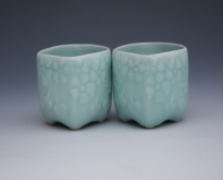 由浙江省工艺美术青年后备人才王武设计制作的《青莲》,在杭州G20峰会上被选为国礼赠送给德国总理、英国首相。经1300多度高温烧制而成,面如玉之玲珑、色如千峰之翠。整组器型饱满圆润,工艺精细。浅浮雕传统纹饰"莲瓣",浑然天成,营造出清秀雅致的自然美感。