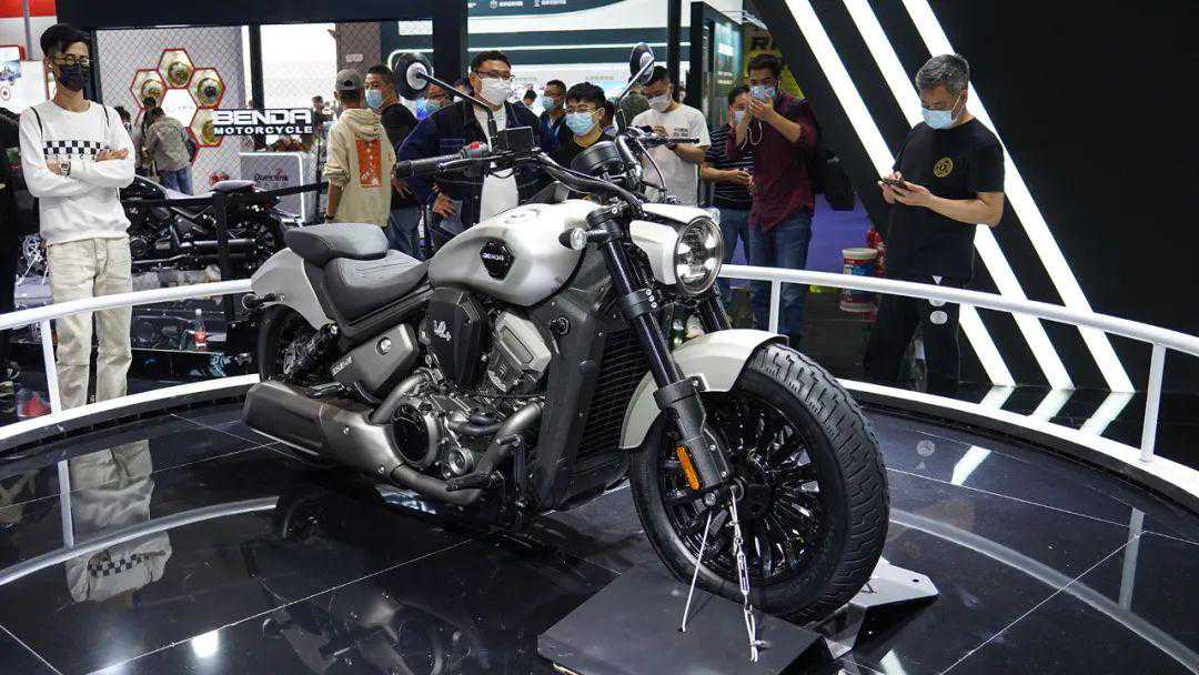此次展会奔达的展台也非常火爆,因为它亮相了一款V4车型黑旗。整车外形设计很讨喜,把巡航车的力量感展现得很好。