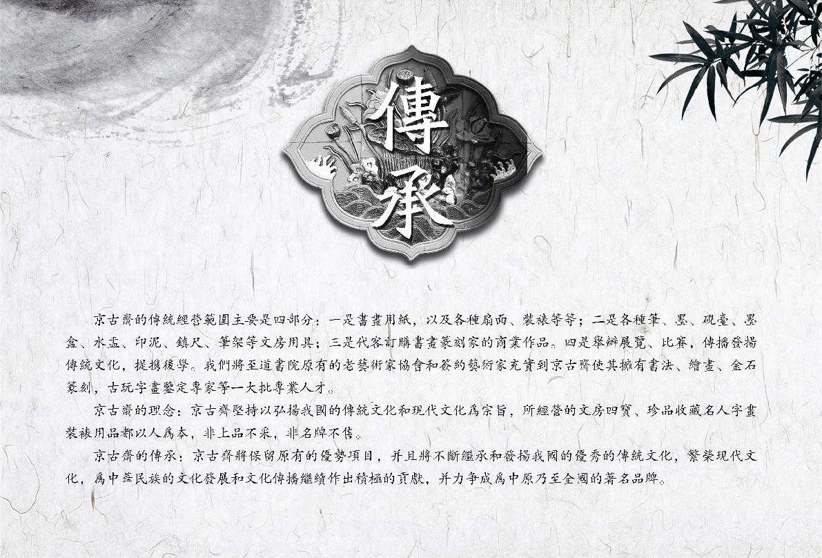 在中国书画经营界,京古斋与北京荣宝斋、天津杨柳青、上海朵云轩、杭州西泠印社等并称为八大名斋,也是国内贸易部注册的中华老字号之一。
