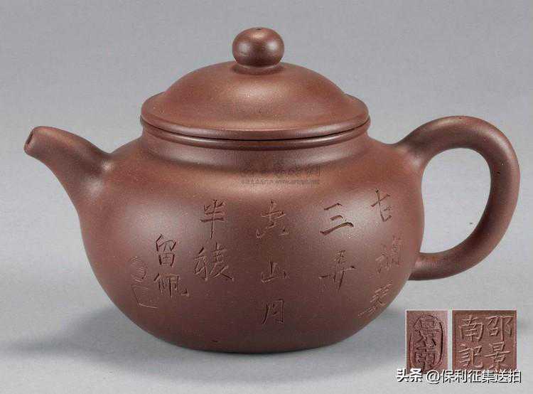 -壶身刻铭“天茶星,守东井,占之吉,得茗饮。二泉氏”,底款及盖内皆有“邵景南印”。成交价:86,250
