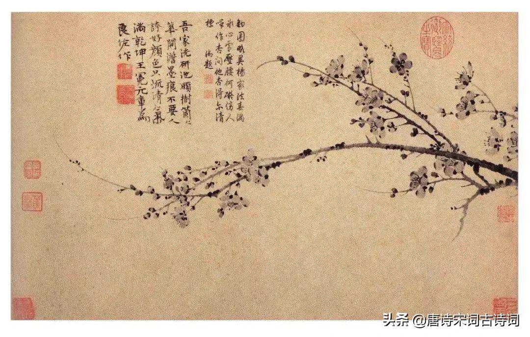梅花好像是吸尽了水池里的笔墨之色,所以也晕染了几盆墨色,而没有半点胭脂气息。不仅颜色清淡,它的骨子里,也透着读书人的清傲,不媚于世俗,可以说诗人所画的梅树,也正是他自己。淡泊名利,高尚品格,忠于初心,这才是他骨子里一直要坚守的东西。