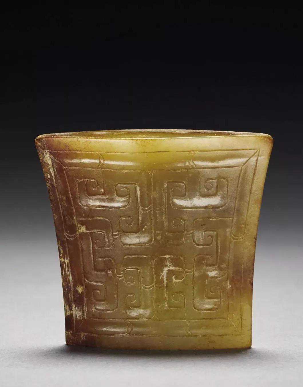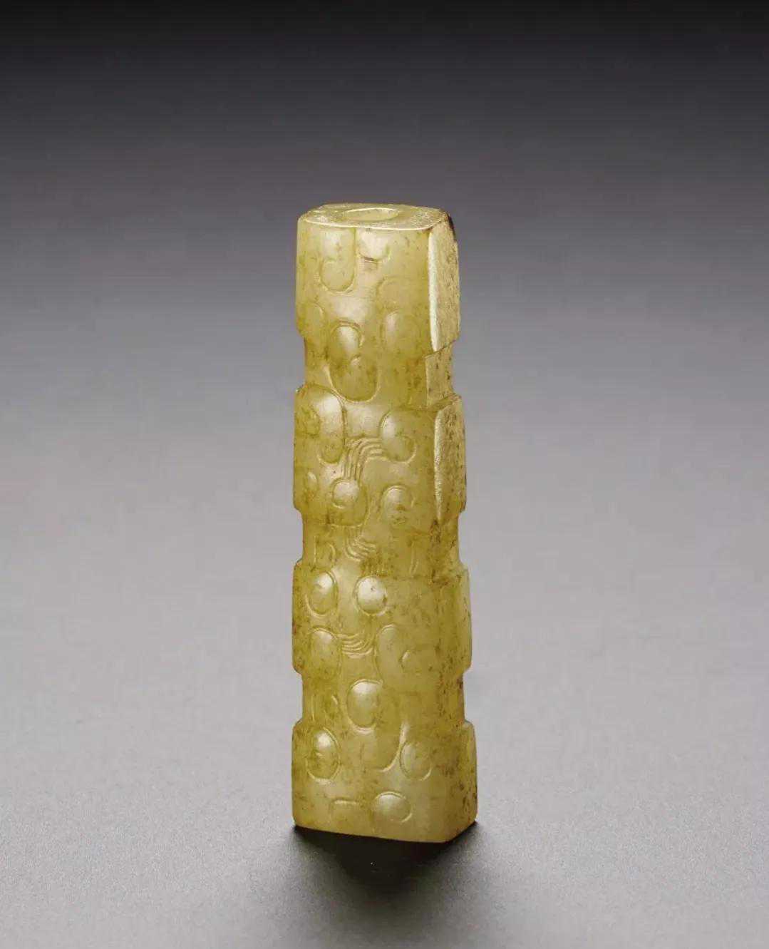 琮为青黄玉质,局部受褐红沁。呈扁矮的方柱体,内圆外方,外表呈现出玻璃光泽,中有对钻圆孔。玉琮是一种内圆外方的筒形玉器,为我国古代重要礼器之一。此件玉琮造型古朴大方,素面无纹,琢磨细致,沁色自然优美,年代久远,保存完好,精美绝伦,是一件难得的玉器珍品,有极高的收藏价值。