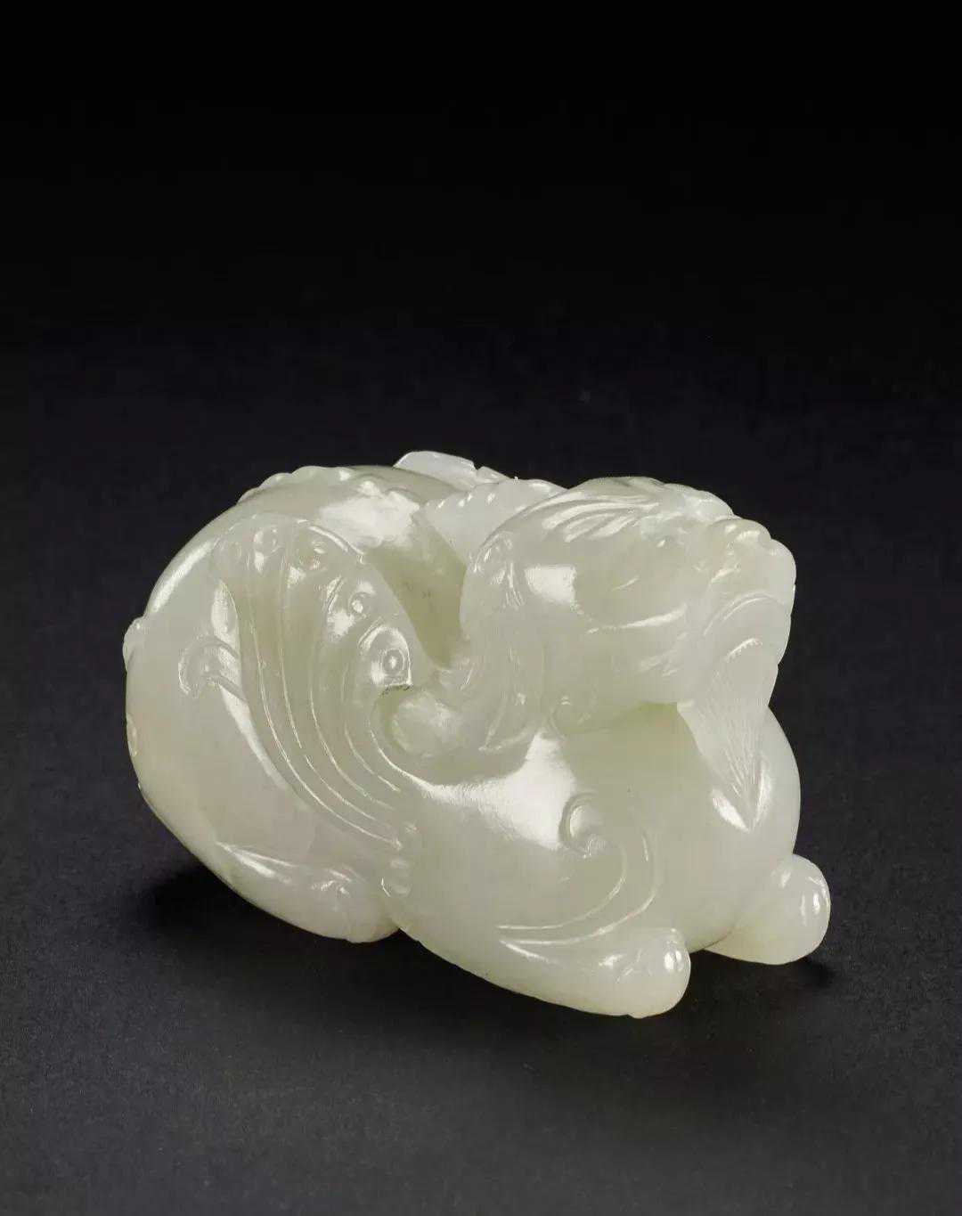 台湾藏家旧藏长须垂胸,体态圆润修长,蜷曲后仰,神情警觉,似伺机待扑,线条自然流畅,精雕细琢,表现入微至发爪须尾。天禄是中国古代传说中的神兽,据传有镇宅驱邪的灵性,为保佑平安之瑞兽,还可招财纳福,极具灵力。