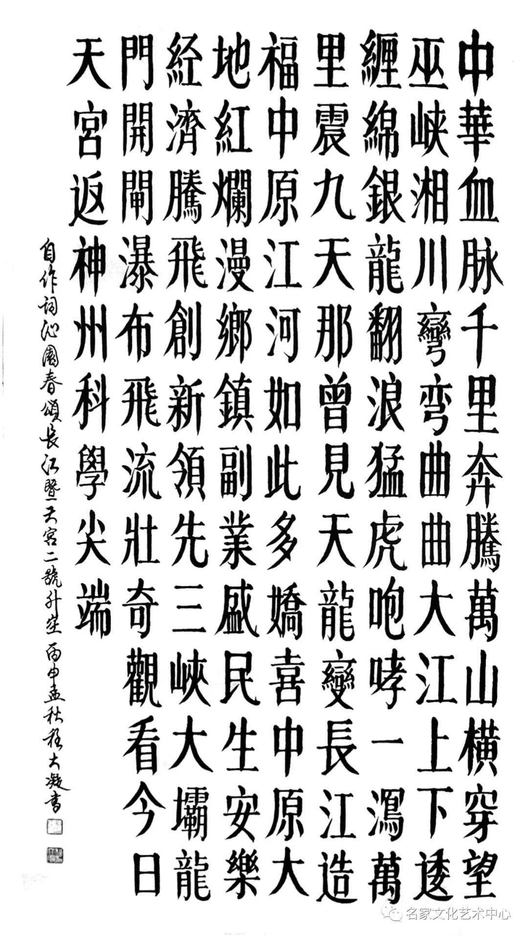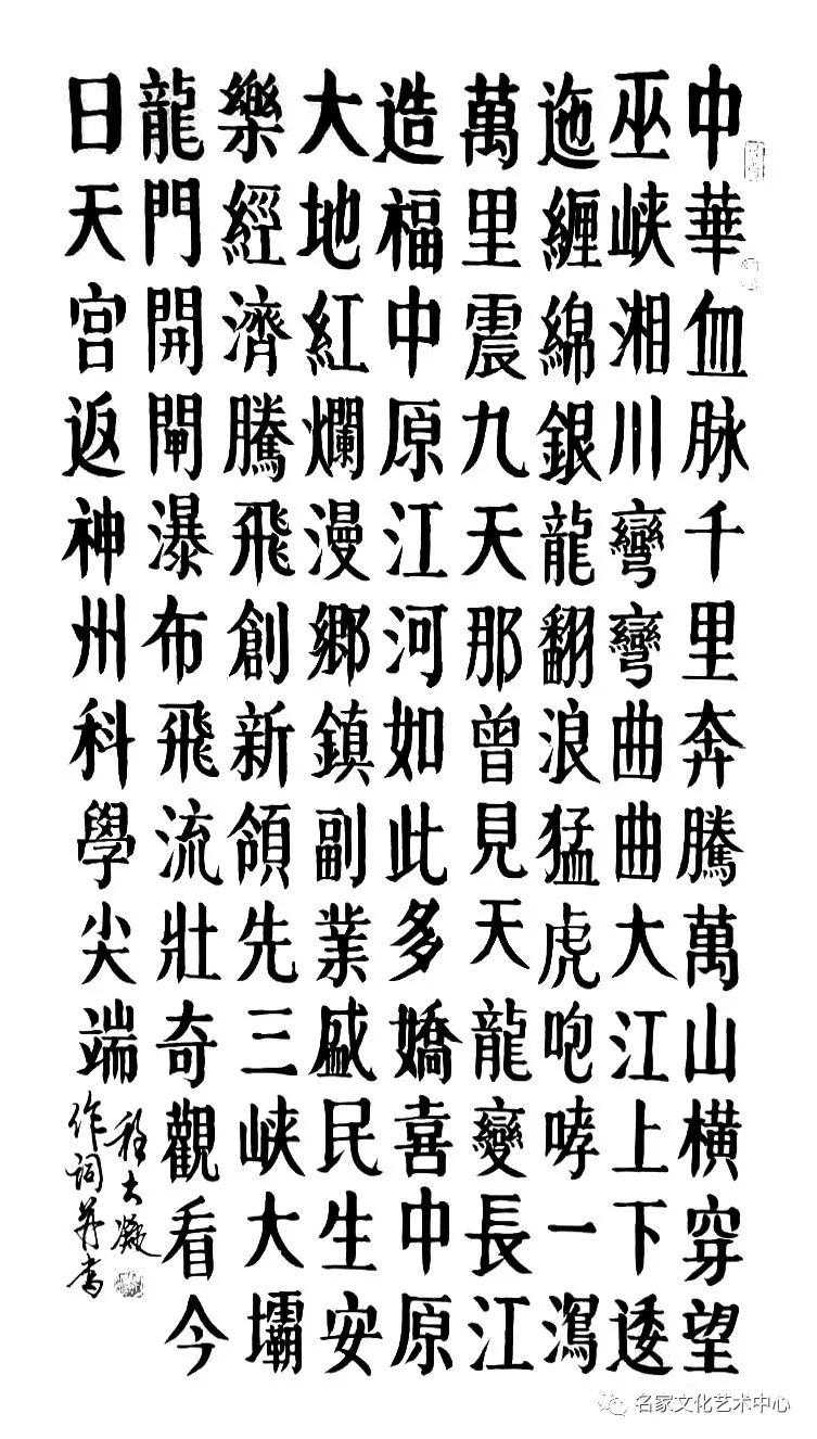 观其程大凝先生的书法作品,整体端庄流畅,师古不泥古,博采众长,用笔凝练精到,章法规整有度、线条饱满、外柔内刚。阖其气以求精,涵其韵以通神,禀赋天地灵气,富有很强的韵律感,创造性的做到了精致与情怀的融合,历史和现实的和谐统一,展现出娴熟的艺术功力,尽显本人的艺术风格,颇具大家风范,一笔一划展现着天地正气和传统韵味,不但典雅清正而且具有深厚的文化底蕴,雄浑洒脱、飘逸俊秀,看了不仅给人以美感而且给人以力量。真正做到思想性、艺术性、观赏性的统一,称赞他的书法是用心灵、用感情、用热血浇注的精神图腾。书法艺术要继承传统,才有发扬。希望程大凝先生能够积极地把中国文化传承下去,发扬光大!