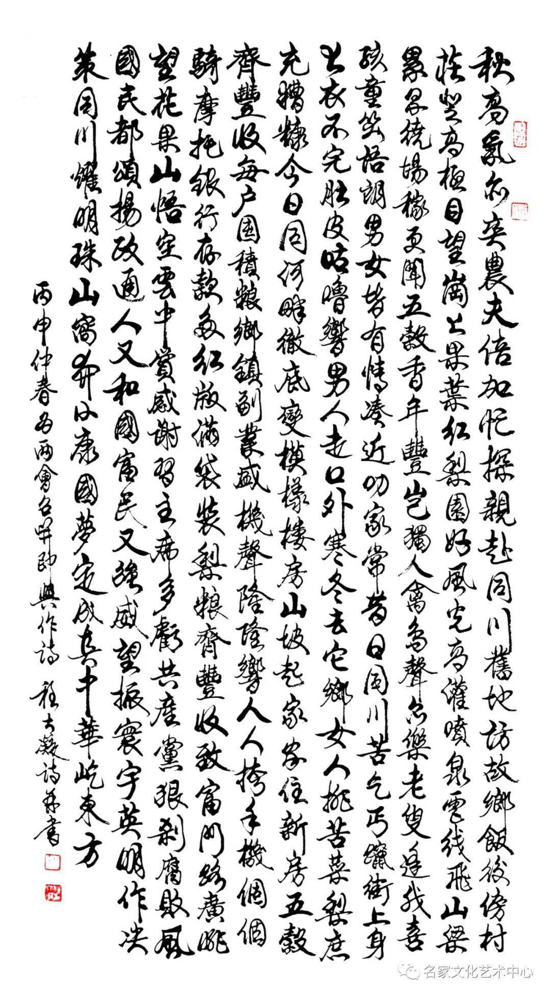 程大凝的作品,纯正艺术,抒情达意,自由舒展。抑扬湍缓,顿挫震撼。经相纬交,飘逸如仙,超凡脱尘。丰笔富画,神墨韵汁。如醉茅台五粮液,渴饮清泉爽神情。举头天宇蕴玄机,低头万物藏河山。他引领文化艺术潮流,影响中国,为人类历史的文明与进步作出了重大贡献。