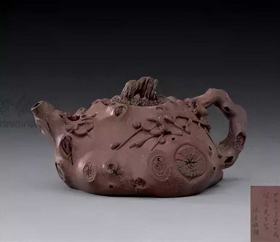 ▲龚心钊旧藏陈鸣远拼砂梅桩壶