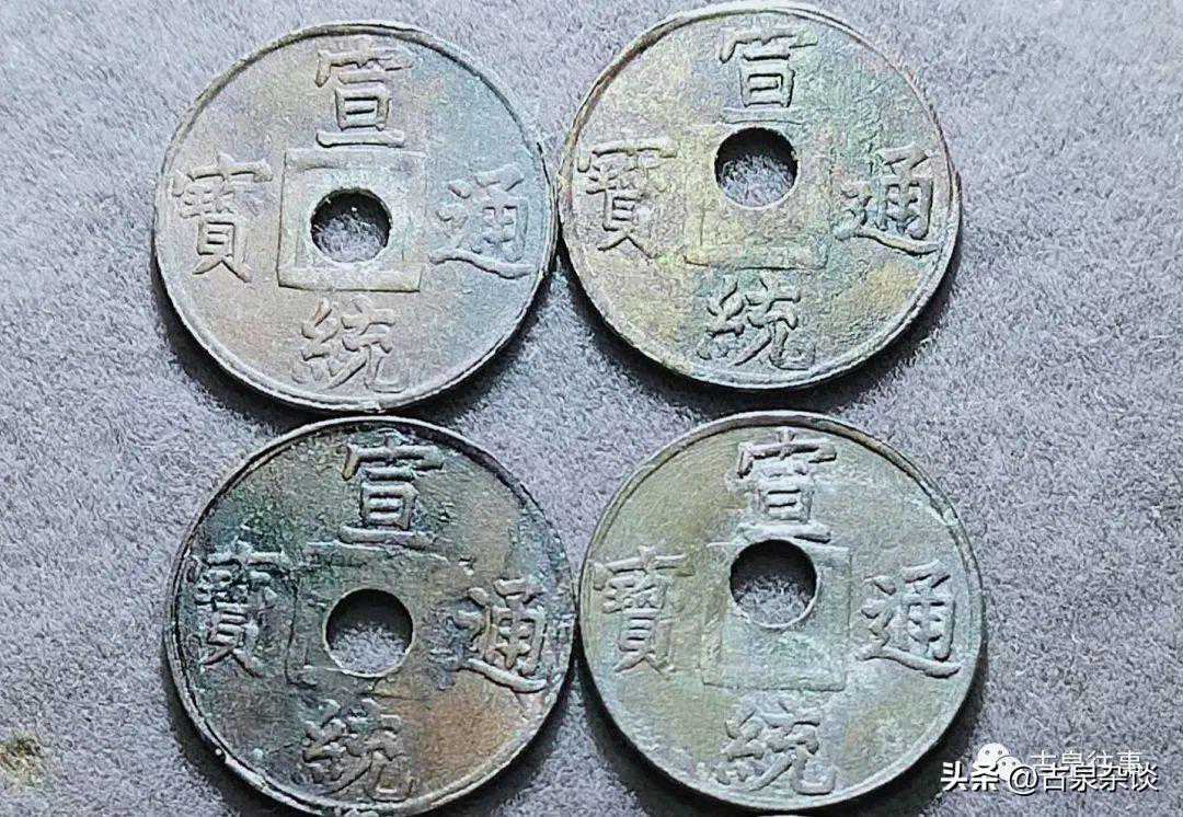 宣统通宝铜钱,制作工艺分两大类翻砂和机制,但早在光绪年就已经出现了机制钱币,制造了很多无孔小铜元,还有就是几枚就是由宝津局代制黄铜或红铜夹铅芯的样币,直径达4.7厘米制作颇为精美绝伦。但宣统通宝铜钱,以小铜钱占主位基本尺寸为径:机制的1.7厘米,薄片状。翻砂的1.2-2.5厘米,大钱反而少。这主要是因为在光绪后期市面基本上都使用铜元,在铸铜钱已无利可图。实际上铜钱已为象征性钱,或许铜元找零还需用些,但它必须是能体现出一枚铜元当十枚铜钱的可能。现从市面的一种“宝广”中圆孔“光绪通宝”﹑“宣统通宝”机制铜钱和“宝广”宣统通宝铸钱看明显减重。然也正反应出当时大清国力之不济。已到了崩溃的边缘。