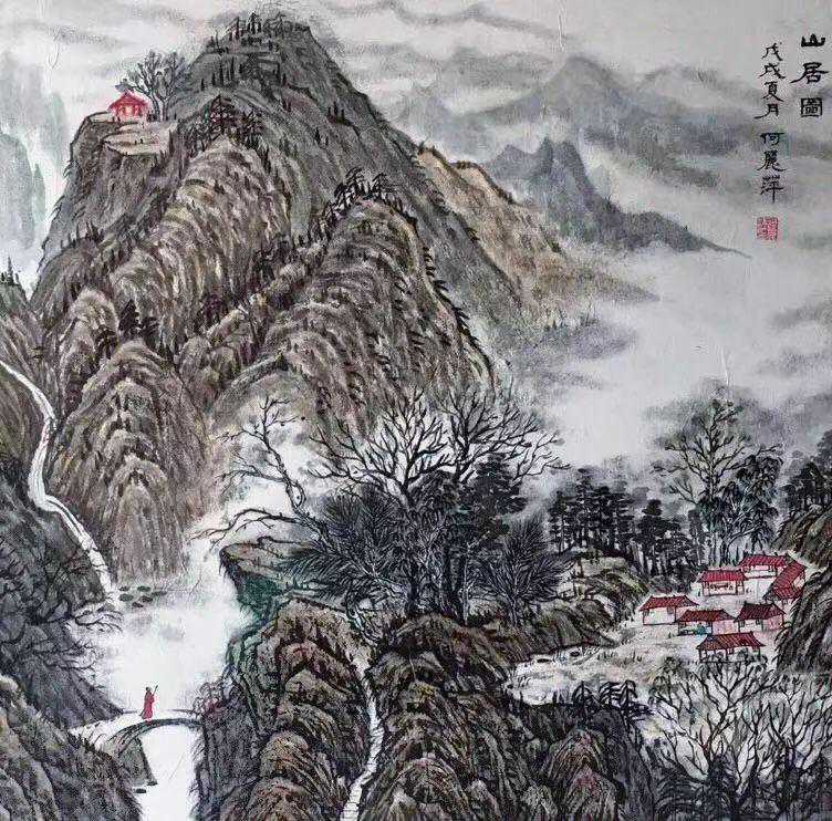 何丽萍的写生作品已经具备了一个画家的基本素质和能力。如她的太行山写生系列作品,我们从中可以发现,她在画面结构、空间、亮度留白等的把握上都相当精准,也从中可以看出其对传统技法的学习程度相当深入。她因此有她自己独到的取舍和理解,使作品形成苍茫、厚重的山水画风格。这无疑是在继承传统以及前辈艺术手法和师从造化上得到的一种统一的和谐之美的表现。