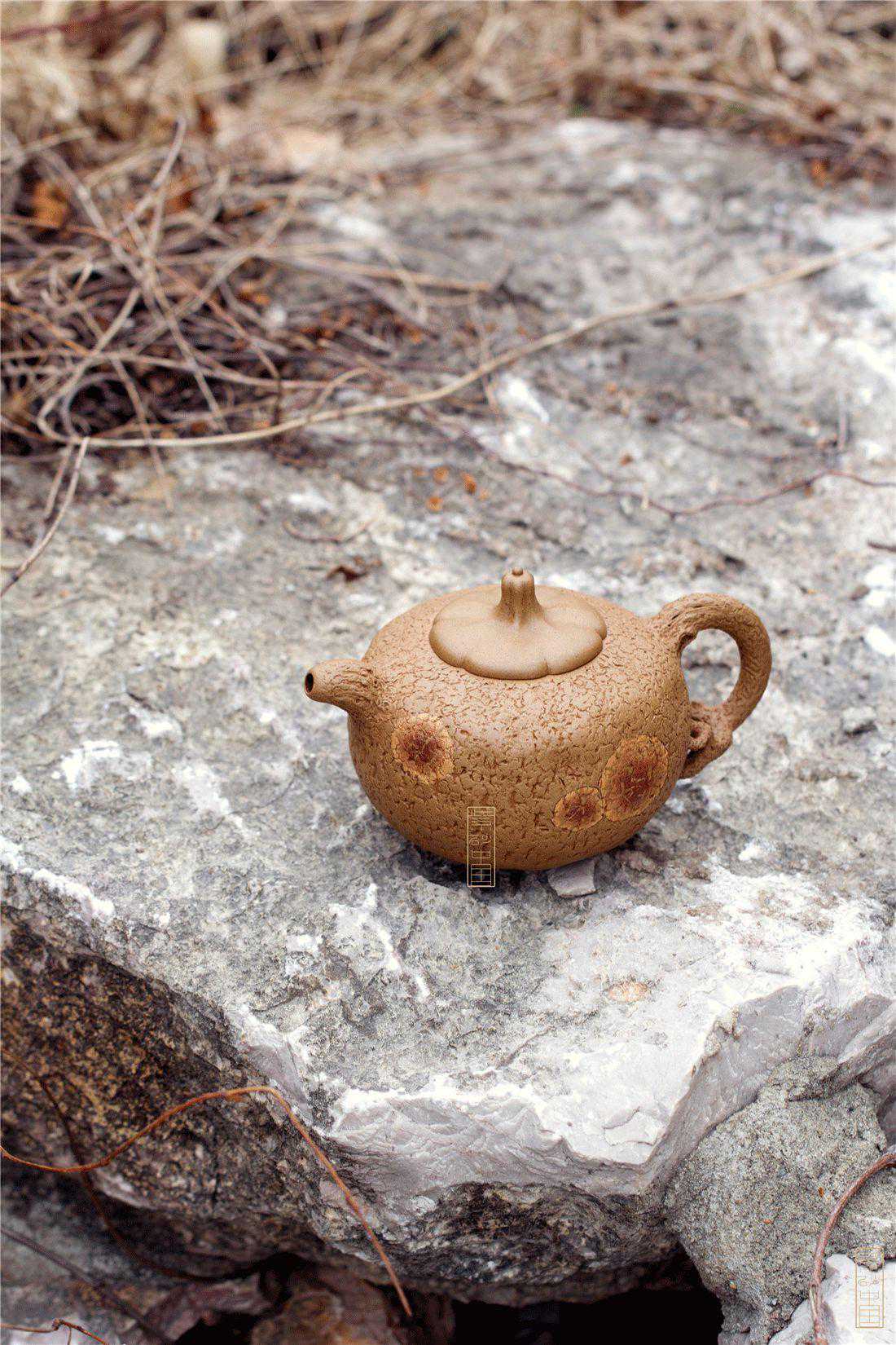 南瓜壶盖,壶把树枝状,从上向下生长,同是树枝状的壶嘴向上伸展,极具张力。壶把和壶流一上一下的造型称势互补,整体视觉协调统一。