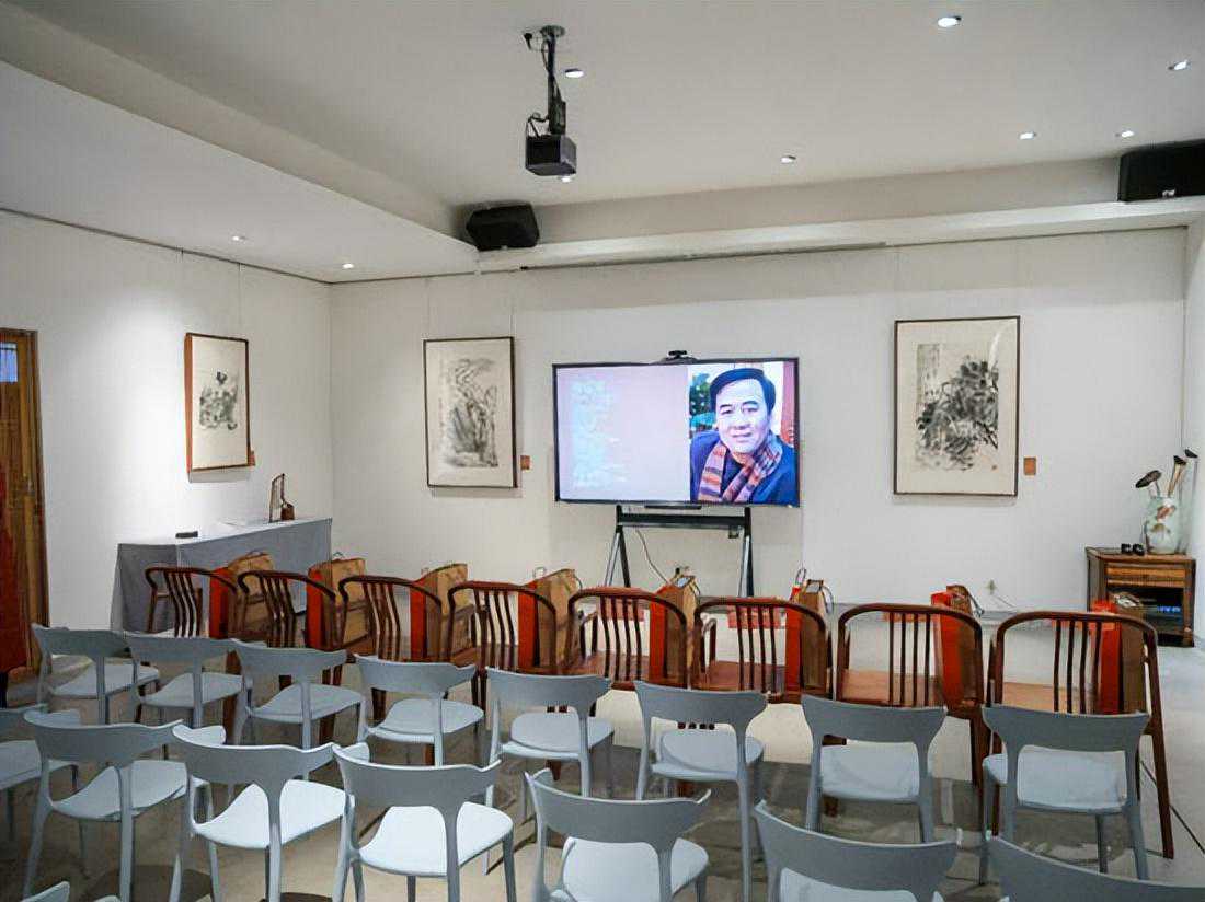 开幕式现场,北京紫苑书院院长——胡萍;中国艺术研究院副研究员——乙庄;北京紫苑书院副院长——郭煌;中华世纪坛教育总监——张海军;民革中央画院副院长——雷甲寿;荣宝斋画院副院长——高文峰;中国传媒大学博导——李宽;著名电影导演——田波先后致辞。北京人文大学教授、北京师范大学花鸟画高研班导师、展览作者——侯廷峰致答谢词。