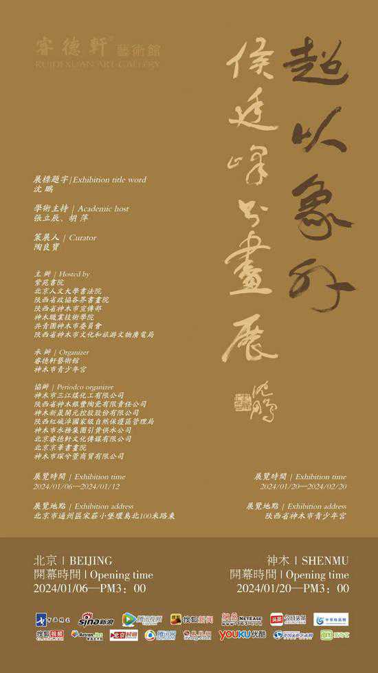 2024年1月6日下午三点,由紫苑书院、北京人文大学书法院、陕西省政协各界书画院、陕西省神木市宣传部、神木职业技术学院、共青团神木市委员会、陕西省神木市文化和旅游文物广电局主办,睿德轩艺术馆、神木市青少年宫承办的“超以象外——侯廷峰书画展”在北京睿德轩艺术馆隆重开幕。