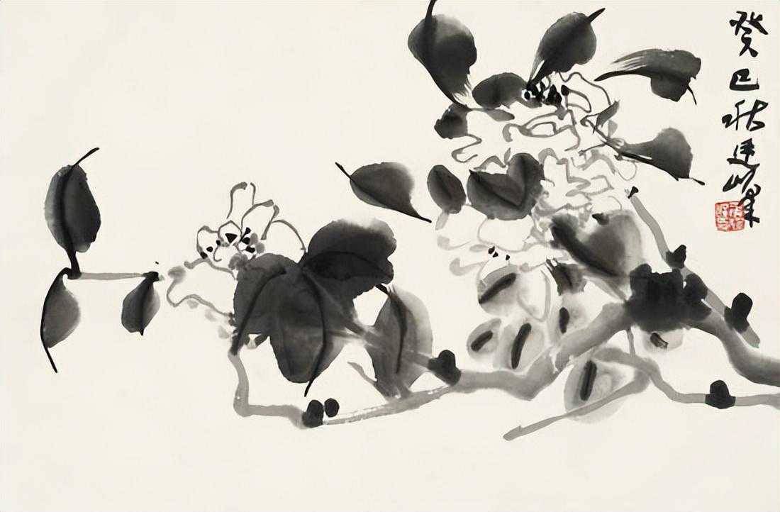 侯廷峰的花鸟画构图也颇有个性。他喜爱用满构图,留白不多,这使得他的作品有了些许的装饰趣味。花卉、枝干、藤蔓常常漫出画面,画面异常饱满,充满张力。加上他从海派艺术中吸取了色彩的用法,艳中带雅,浓郁芬芳,有种热烈高涨的气氛。在《紫藤》《丝瓜》《芭蕉》等作品中,能感觉到植物生长中那种破土而出的、似乎让周围都变得局促的一种旺盛生命扩张力。