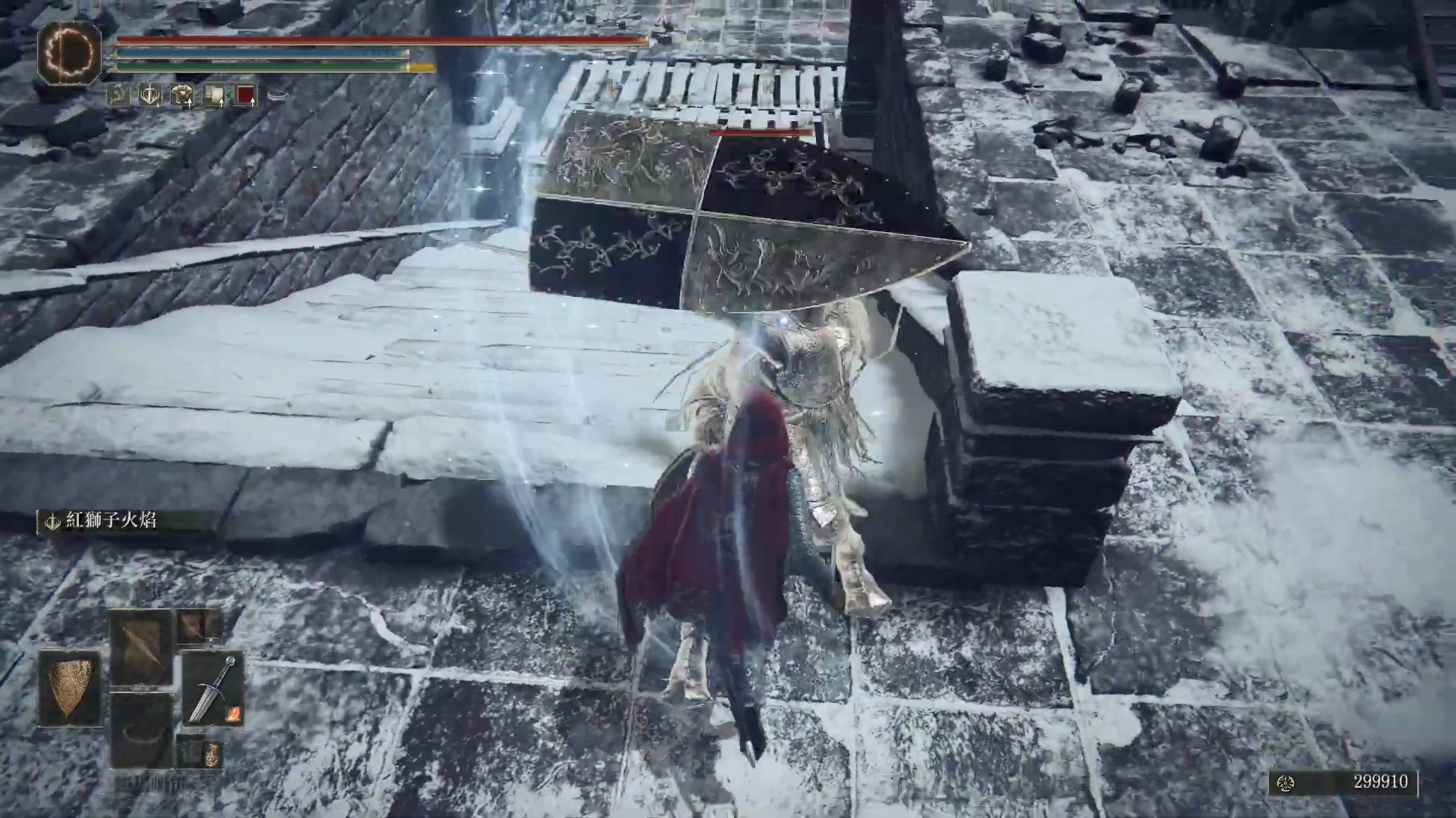 解法:用艾琉薙刀,先A一刀让它着火翻滚,然后接战技直接收掉。如果你学会了这个招数,只需要带个一两瓶蓝水就可以把全城寨的大手怪清掉,但是雪山遇到的那个大个的手怪不会着火,所以这招无效,请捡一捡东西然后避开它。