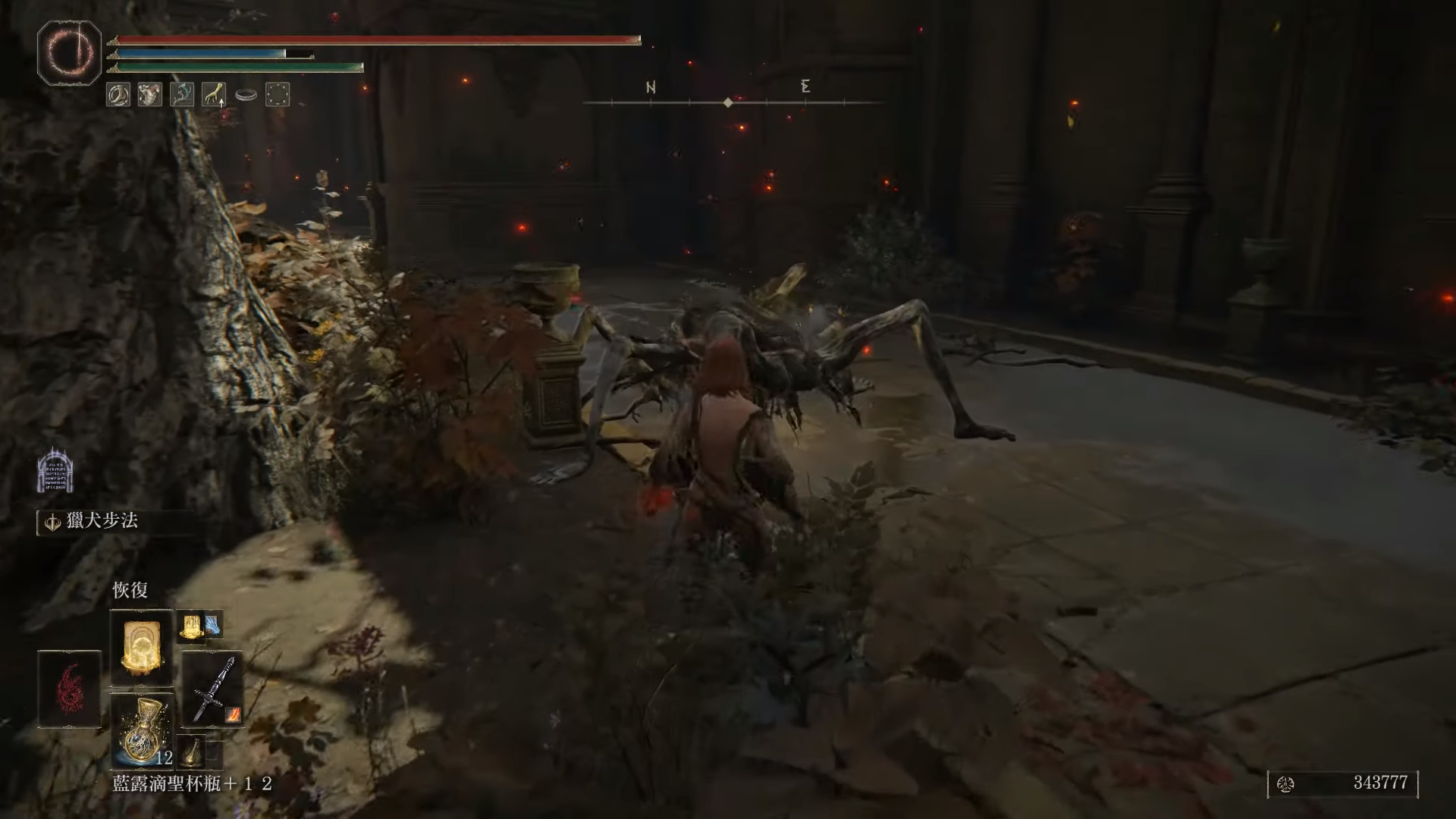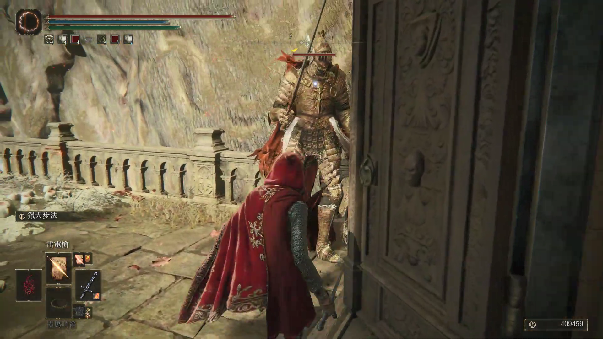 解法:蹲着接近他,看到他消失后用特大剑往后戳,接下来就跟打蚯蚓脸的打法一样。如果你对自己的转向没把握,干脆就直接冲过去。这个怪出招的时候都没有特殊霸体,所以他放突进战技能直接被戳下来。