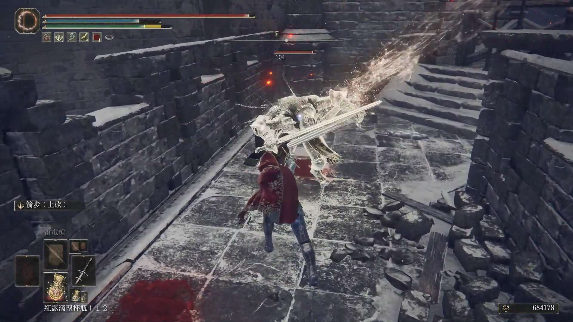 另外,如果没把握躲掉攻击就举盾扛,每波攻击空档的时候放盾回耐,带把可以出血的武器会打的更快,刺剑长枪等武器则可以边举盾边戳。