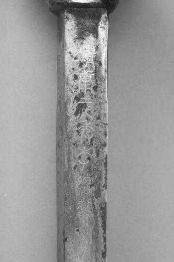 福建博物院藏“宋靖康李纲锏”,其全长96.5厘米,内棱长74.1厘米,所配鞘长76厘米,总重约3600克。锏身呈棱状,渐往锋收。四刃每刃面宽1.6厘米,刃锋利光亮,近格处一刃面嵌金篆书“靖康元年(1126年)李纲制”七字。