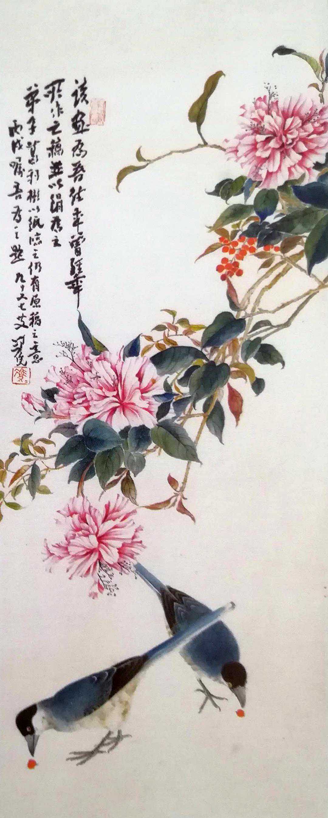 诸葛亮《诫子书》中道“非淡泊无以明志,非宁静无以致远”这是振聋发聩的千古哲理,恬淡寡欲方可有明确的志向,甘于寂寞才能达到深远的境界,艺术家的人生更应如此。日日相与素宣香墨,枕书而眠、乐而忘身、见微知著、静写乾坤,从花草摇弋多姿里提炼出率真大气的丹青语汇;从禽鸟的和鸣吟唱中体现出细腻而丰富的精神表达…这是葛利彬的追求,也是葛利彬的生活。这是一个内心安静天然淡泊的人,安静的笔墨日课,安然自得地享受自己的书斋日月。静能生悟,静,是笔墨力量的不竭源泉;淡能雅洁,淡,是艺术修炼的不二法门。品读着一幅幅精心之作,这些作品所遵循的是传统笔墨的法乳正脉,所追求的是心与物一致融合。在作者慧心雅质、充满生机、积极向上的唯美世界里,写意的豪放、工笔的细腻、没骨的清丽、水墨的雅致重彩的华美,一一映入我们的眼帘。在笔墨线条书写的韵味中,四时花木、鸟兽鱼虫似乎争着向我们诉说,诉说着生命的欢悦、诉说着画家的欢悦……这不正是中国花鸟画千百年来传承并发展的真正意义的所在吗?