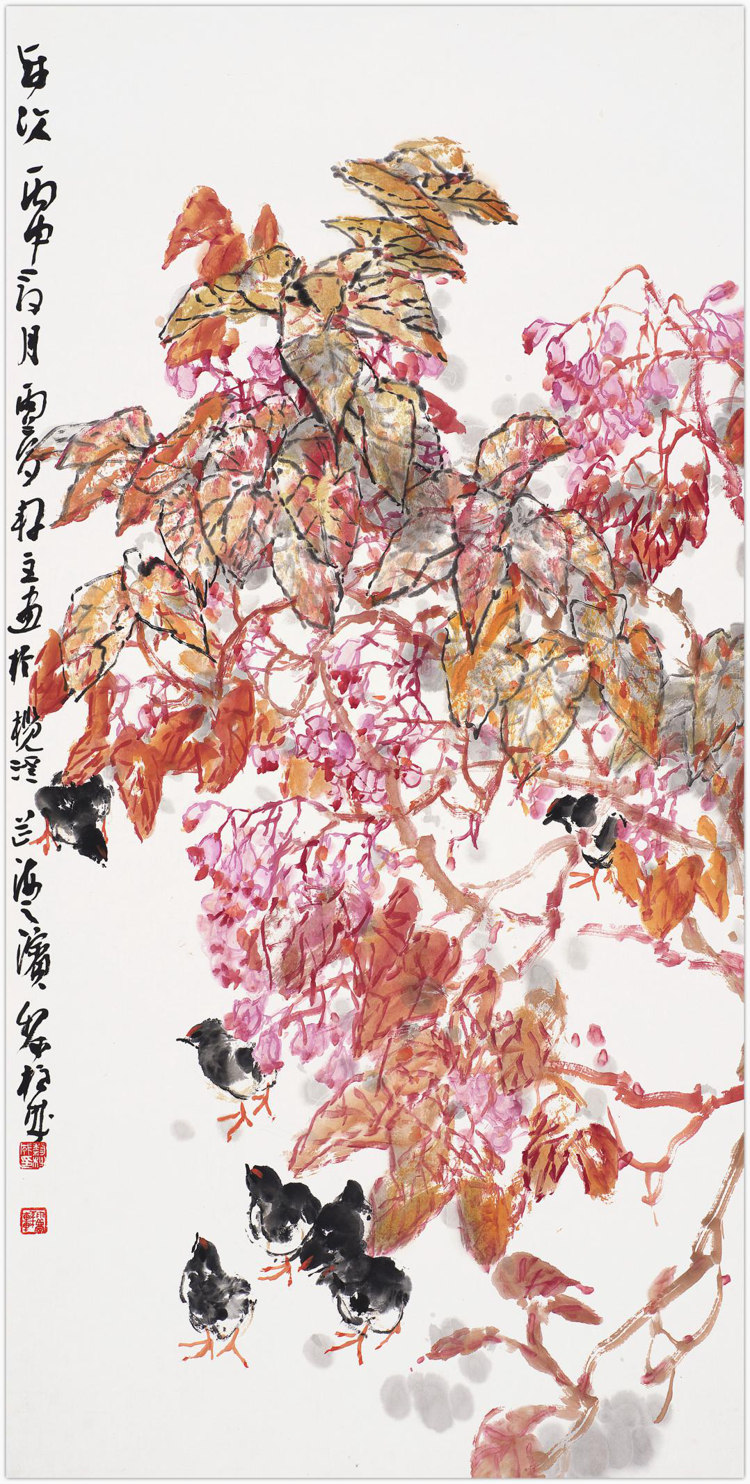 黎柱成的画具有浓烈的岭南特色,纵横均匀带来扑面而来的气息,尤其是他的传统程式和新题材的把握,处理的非常好,他的花鸟画的题材很多,包括海棠、牡丹、木棉都非常有特点。这些传统的题材又是非常难创新的题材,他用自己独特的表达方式呈现出来,是非常难得的。