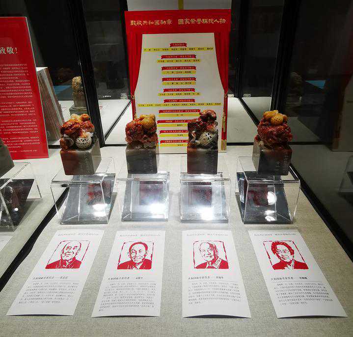 在临安昌化石展区,国家级非物质文化遗产项目传承人钱高潮为大家带来了共和国勋章获得者肖像印。他以家乡的昌化石为载体,辅以精湛的手法,倾情于刀锋,巧思于石上,再现共和国勋章获得者的卓然风采。