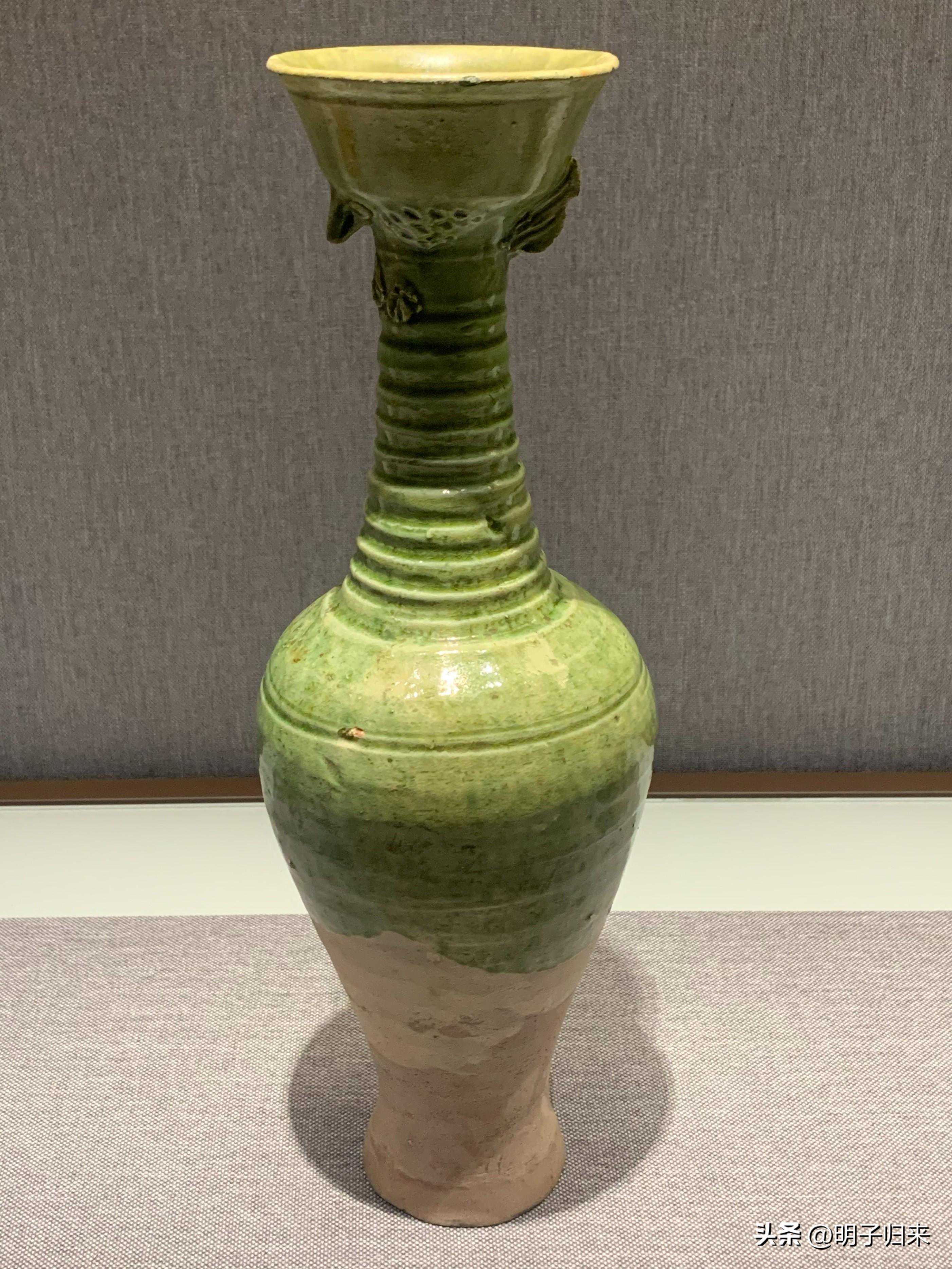 辽金三彩釉划花捏梁鸡冠壶(长颈形为契丹经典造型之一)